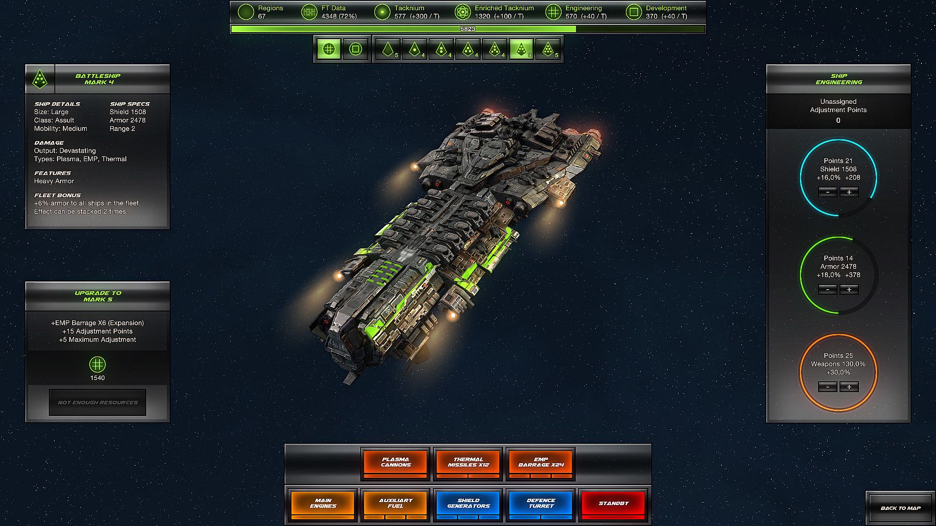 - 7 fleet-wide stackable ship bonuses.