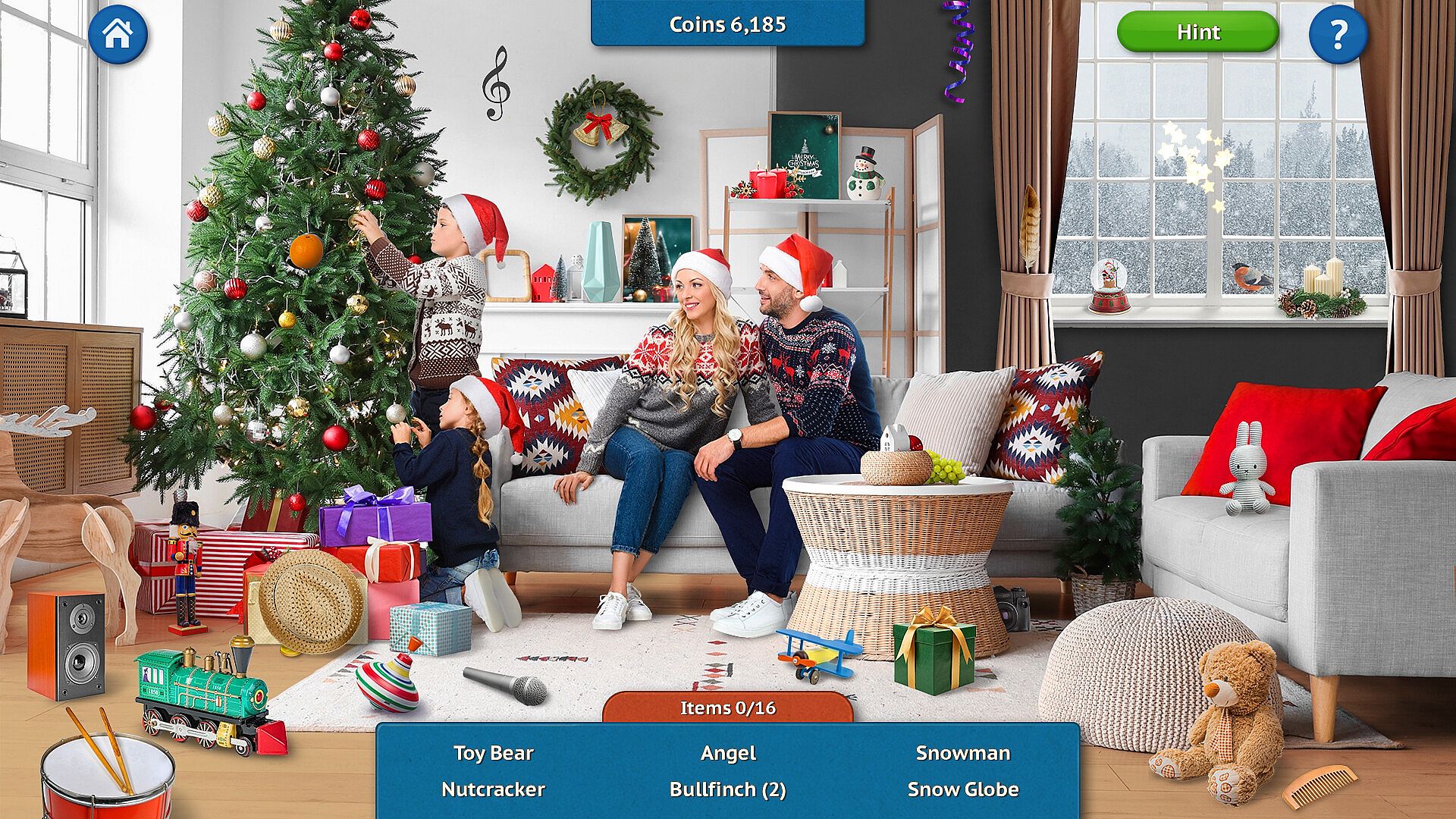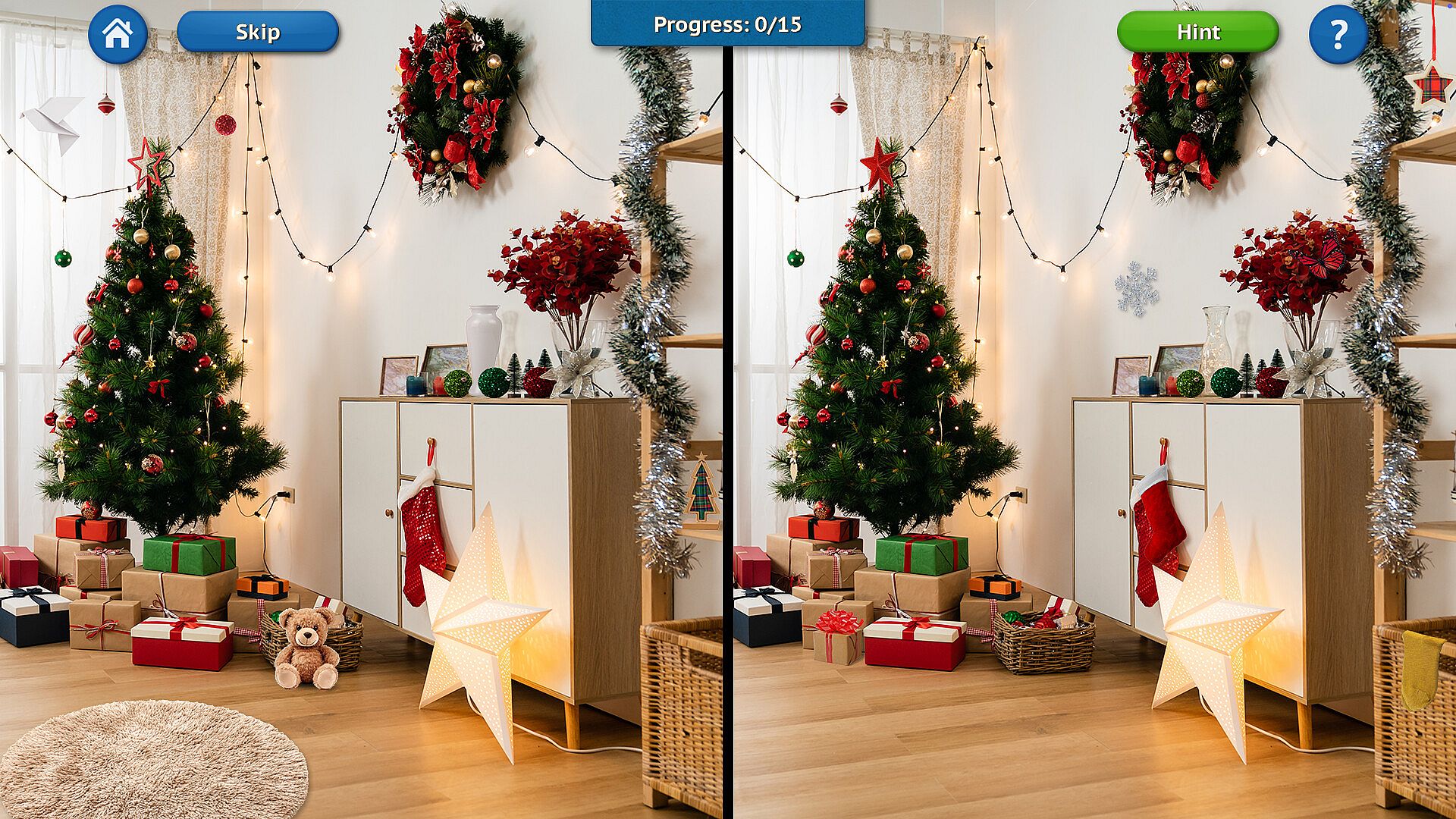 Christmas is coming! That means it’s time to dive into the holiday spirit with the new game Find All Things: Christmas. This time, you’ll explore a variety of themed locations filled with Christmas magic and an even wider selection of mini-games. Set up a cozy festive room or head to Santa’s workshop to help the elves assemble toys — there’s something for everyone! Play mini-games, search for hidden objects, beat match-3 levels, complete puzzles, and solve riddles — all in one game! For every level you complete, you’ll earn coins that you can use to unlock collectible items for your room. In this game, everyone will find something they enjoy!