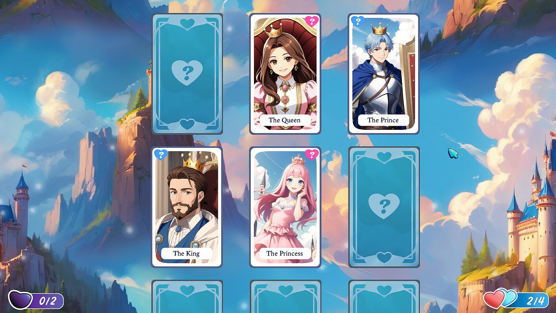 Find My Love is a beautiful memory game where you must find lovely couples. Different from conventional memory games which you must find two same cards, in this game no card is equal to anyother. Find the King and Queen, the Prince and Princess, the Cowboy and Cowgirl, the Groom and Bride... and many other couples that truly loves each other. But be careful, there is some bad cards on table! Dont let any evil ideology destroy the pretty love of these couples, find each couple and help then to stay together until death do them part.