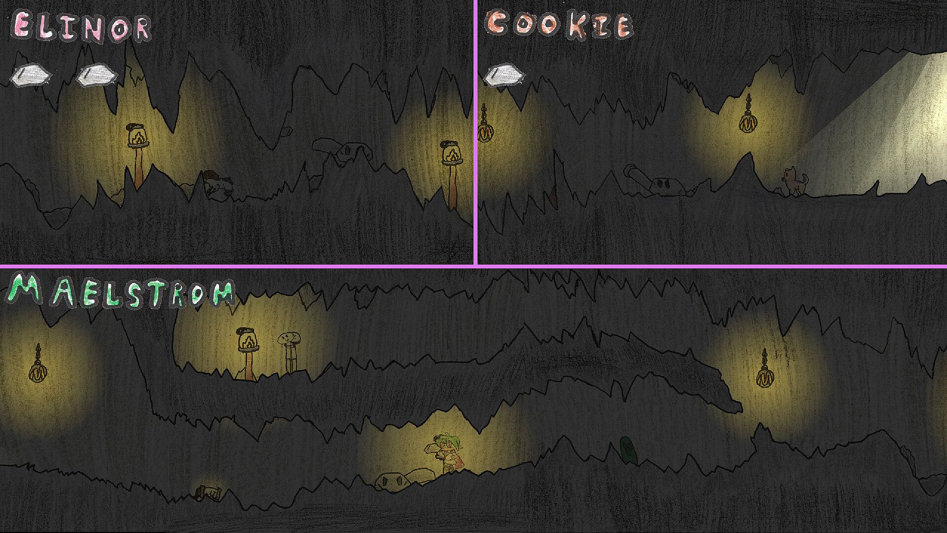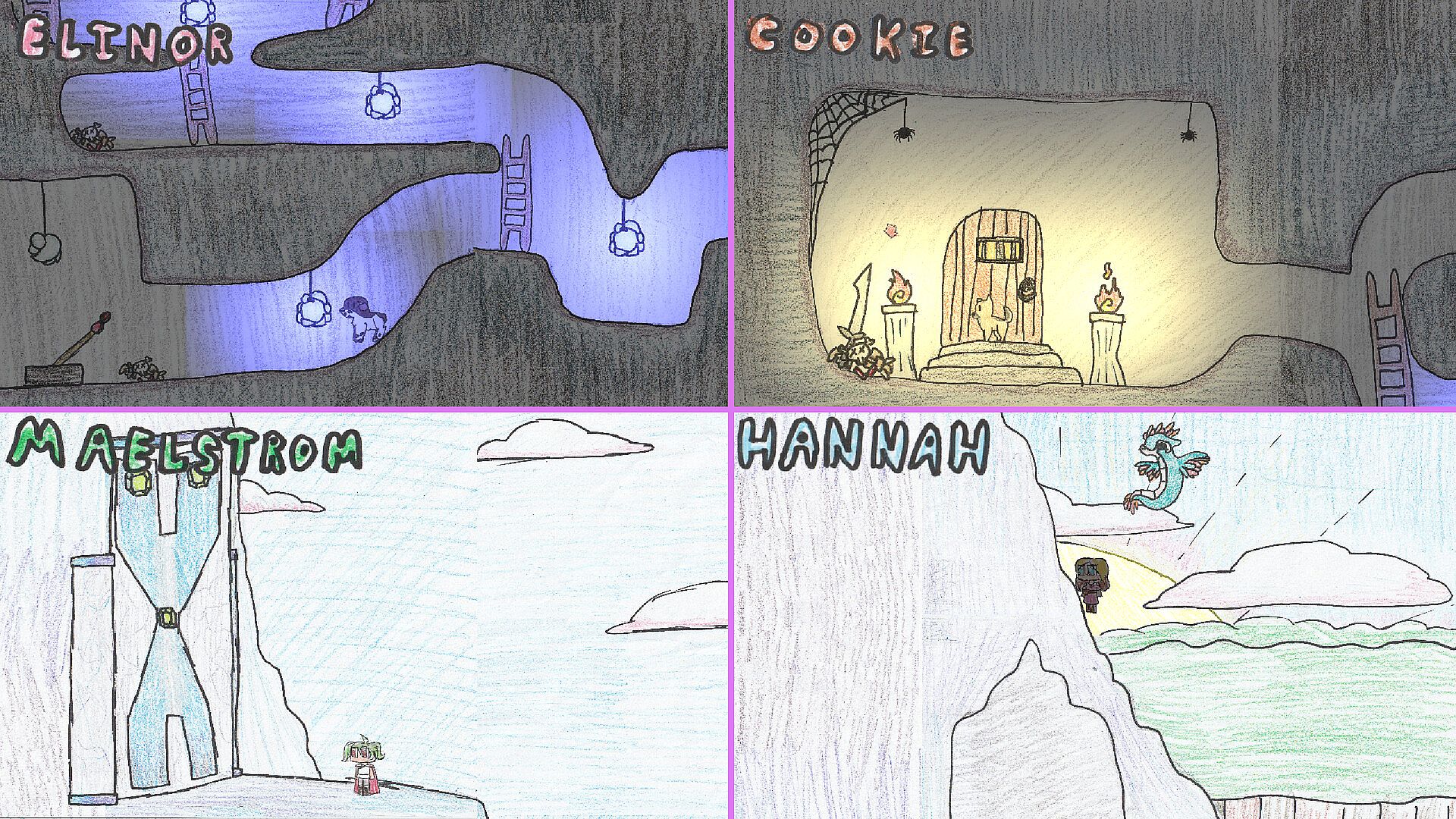 Our cat Ivy has left the house and run off, and it's up to our heroes to find him! Play as one of four unique and delightful characters as you make your way through a hand-drawn world of crayon and pen. Collect items, solve puzzles, run and jump, and battle bosses on your own or with local and online friends. Four heroes are better than one, after all!