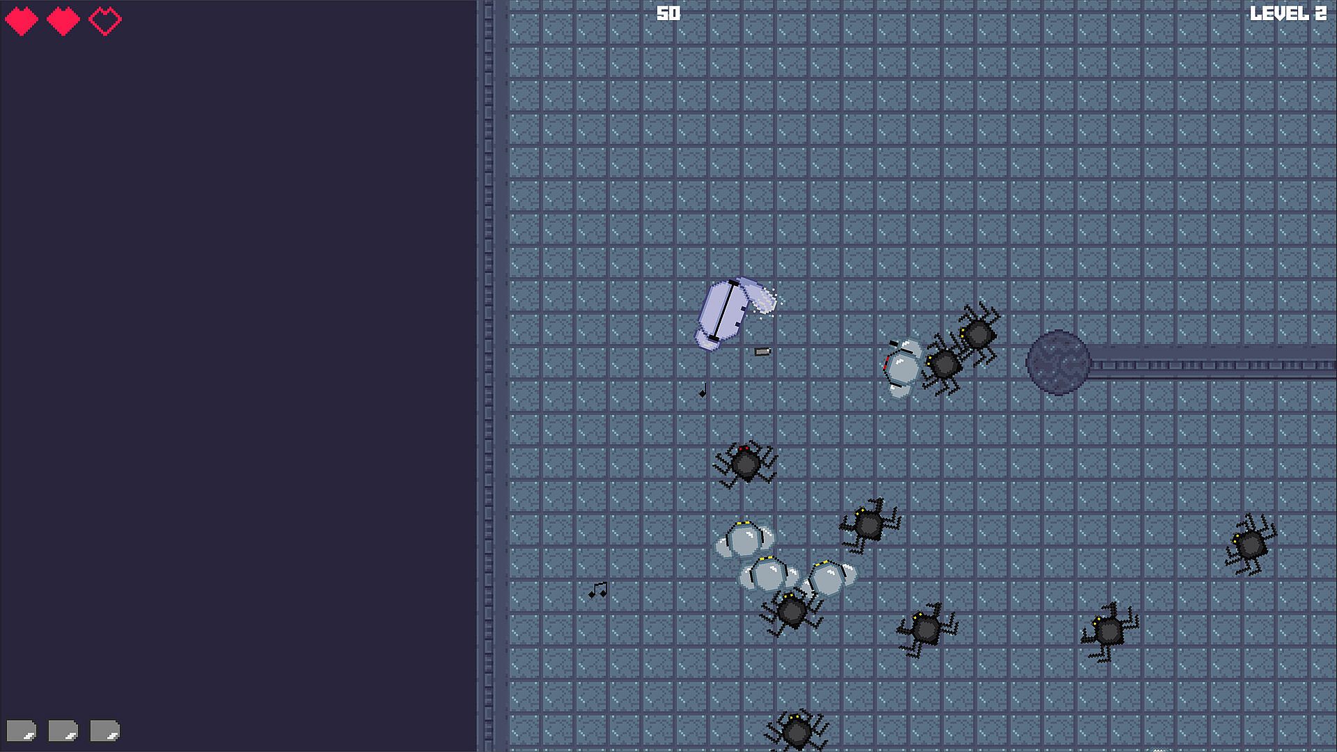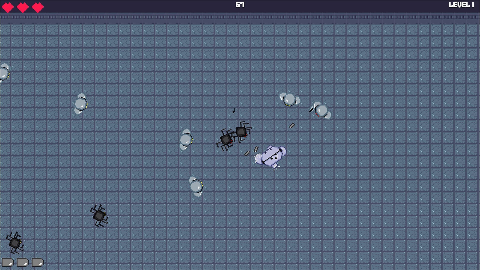 This game was designed for fast-paced action. Dodge enemies, bullets, and explosions while fighting a swarm of incoming mobs. The game was designed with ease of controls in mind to shoot, parry, roll, and run easily.