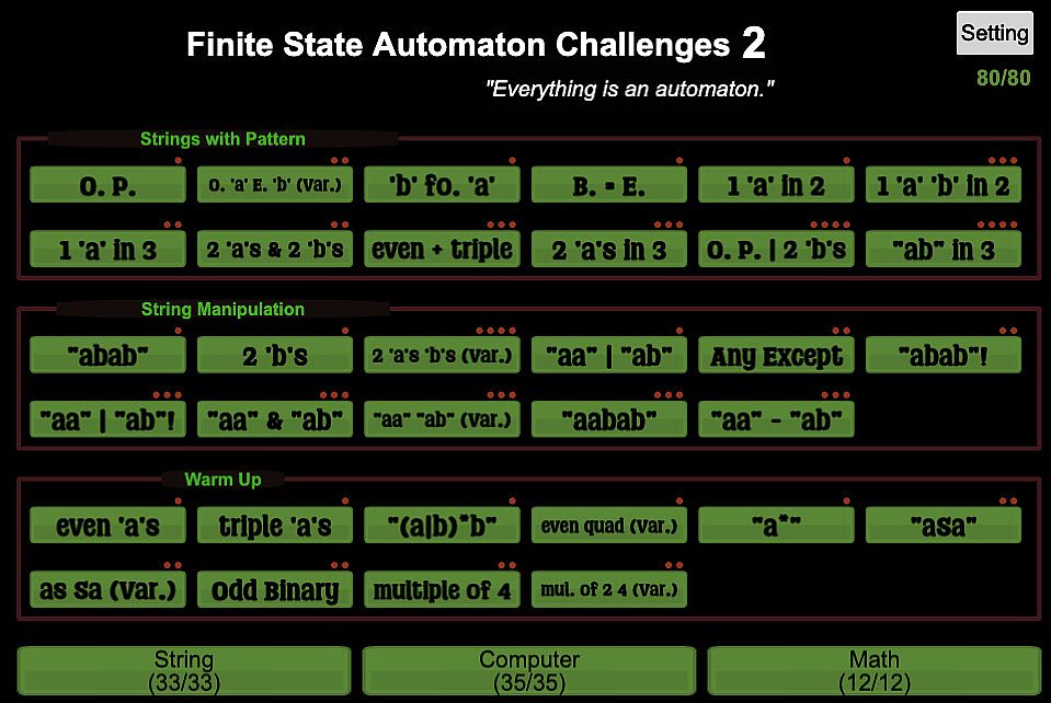 If you are unfamiliar with Finite State Automaton, we highly recommend playing our first game (Finite State Automation Challenges) or learning it online in advance.