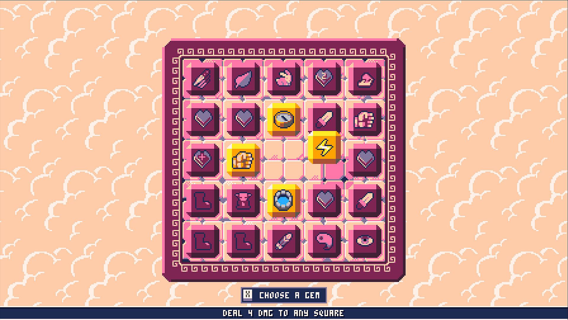 Besides generated levels, the game features a randomized skilltree that makes every run truly unique without over-complexification. After you beat the regular game, you will unlock the ladder where every win will unlock the next handicap to put your strategy skills to the test. You may also unlock gambit mode, where you may stack as many of randomly-proposed handicaps as you want to make up a challenge of your own design.