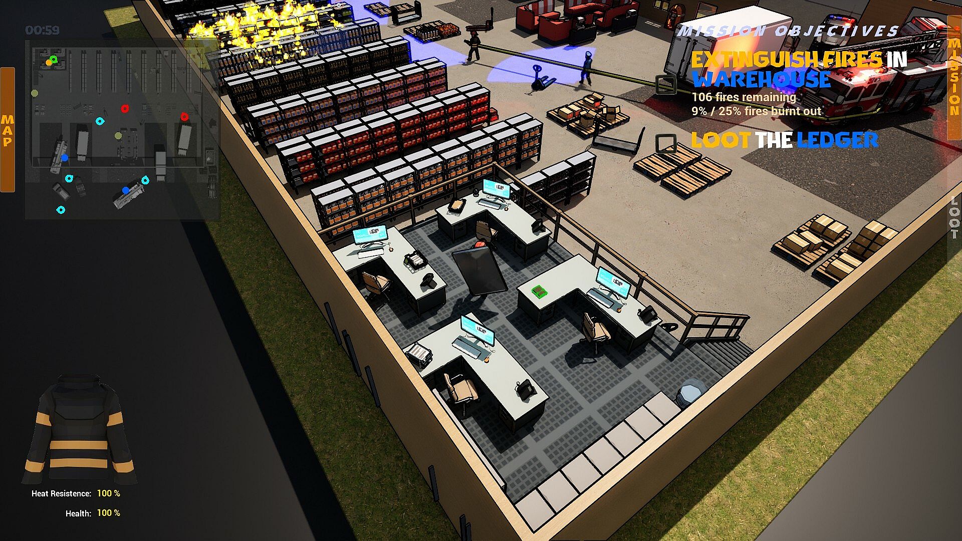 You're a rookie firefighter battling blazes around town... the perfect cover to steal valuable loot.