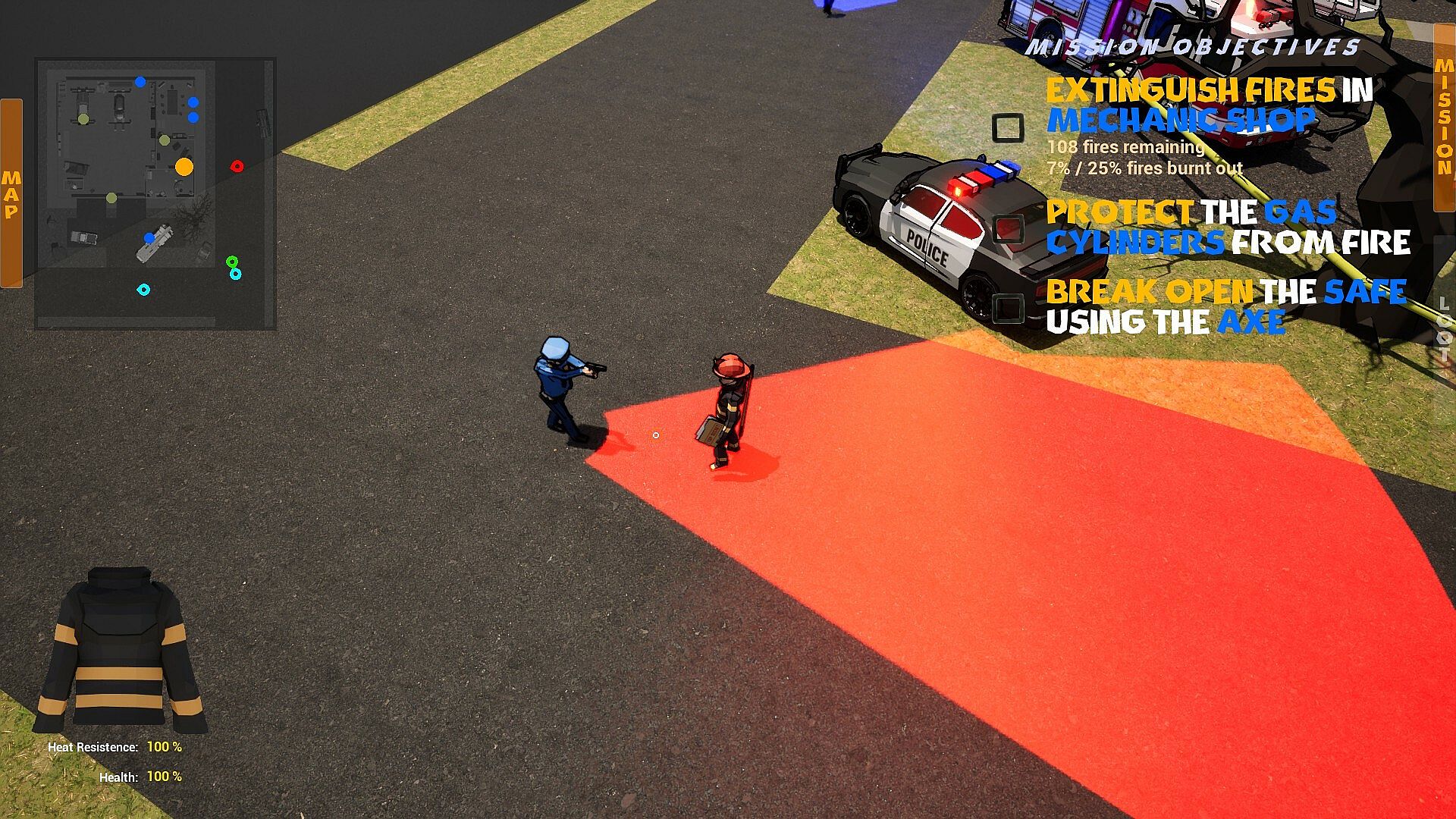 - Attempt to steal special items on each map without letting the fire get out of control.