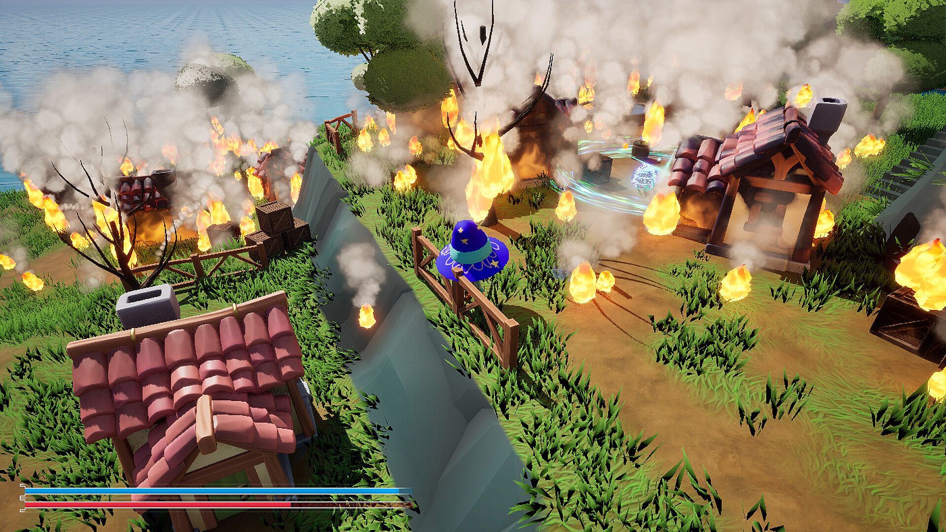 FireFighterWizard is a third-person action-adventure game built around a stylized firefighting. An unseen natural disaster is about to turn the once peaceful fantasy land into a fiery inferno. Try yourself in a role of a firefighting wizard who uses the power of magic to save people, douse burning cities, and traverse treacherous wildlands.