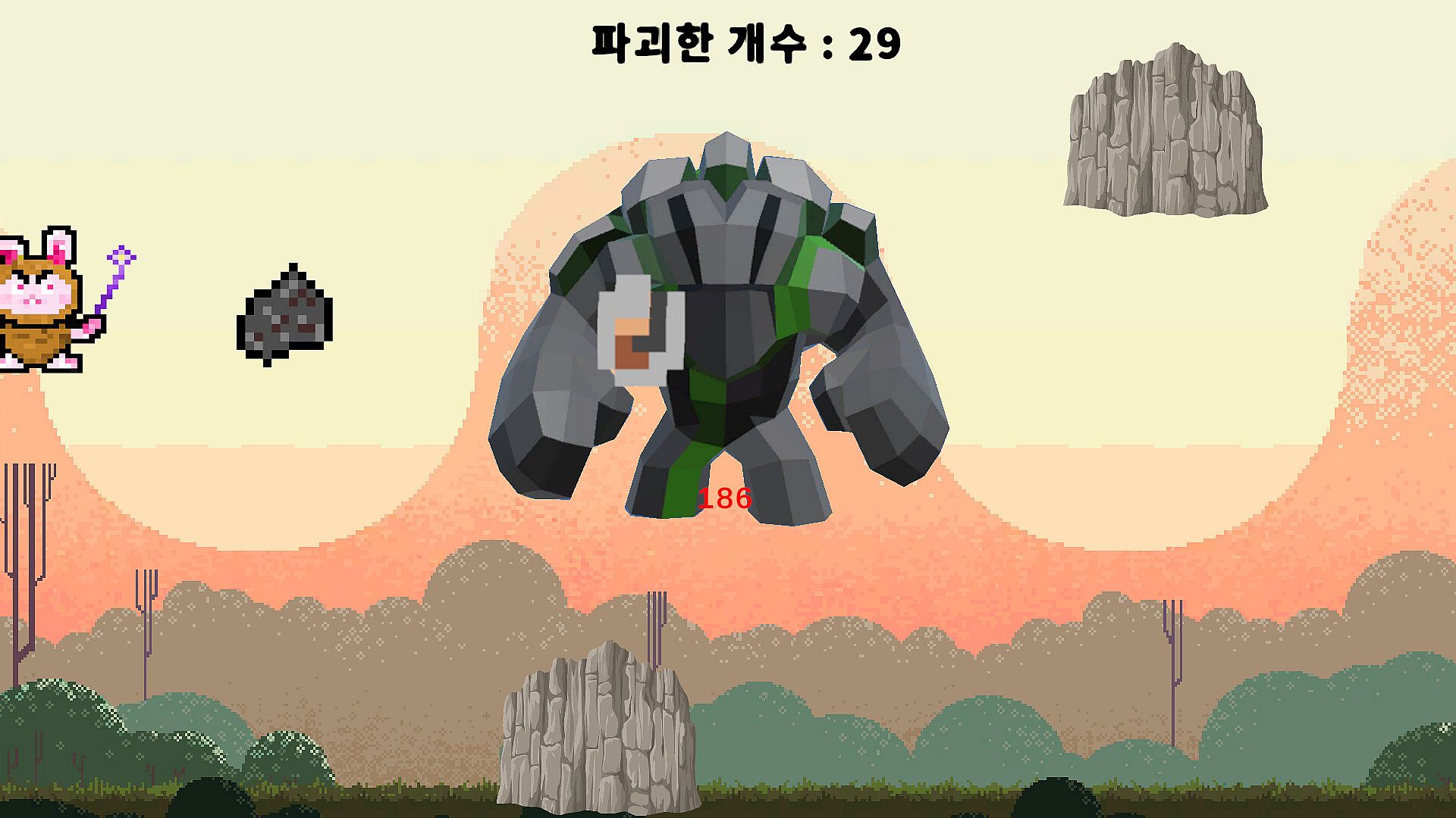 This game is a simple shooting game. Break stones to obtain goods and use the goods to purchase and strengthen skills to defeat the boss!