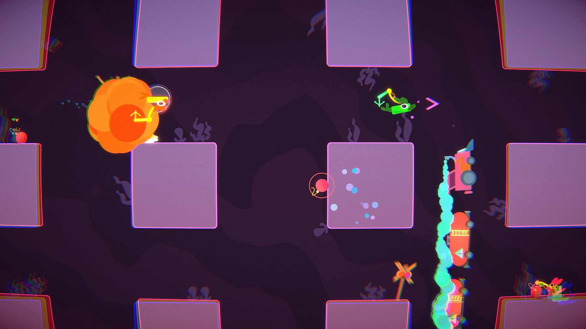 Fish Chips & Bombs is a tight, fast paced, twin stick shooter roguelike with a unique movement + gun swap system that offers a creative take on the platforming genre with variety of power-ups that keeps the fish fresh