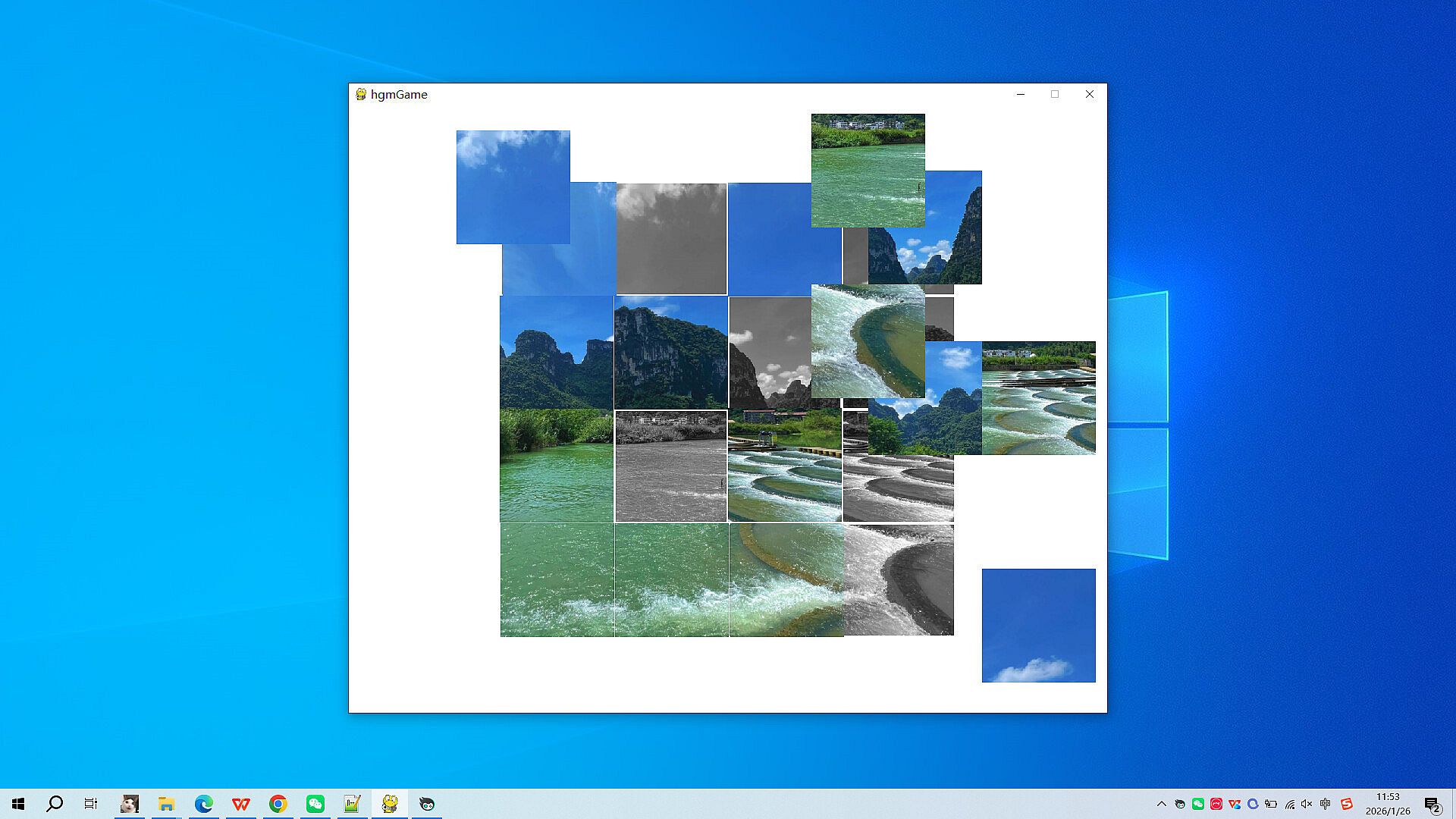 Click on 'start game', the image will be grayed out, and the colored parts will be randomly scrambled into 16 small fragments, scattered randomly on the screen