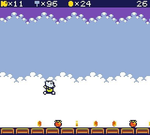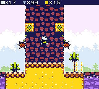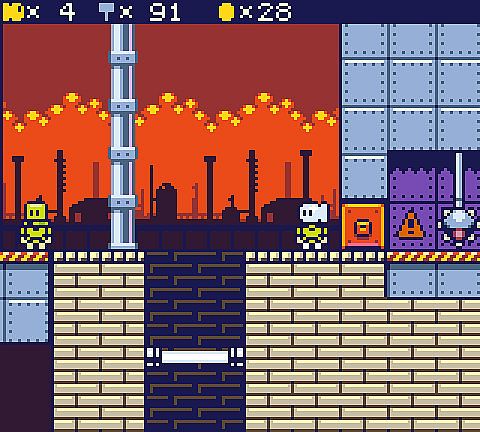 The game is based around a big overworld with 50 doors. Most of these doors lead to levels, some to other locations. In most levels you have to collect usb-keys to open doors, find switches, collect hammers and defeat enemies. Some levels have light puzzles, others have mini bosses. The game has around 40 enemies and other dangers. You can get new moves (like wall-jumping and swimming) in labs, opening new parts of the game. In some levels you get help from a goose, which somehow stumbled into the game. He will fly you to places, or you can ride him when he is too lazy to fly. The game features simple but tidy, low-res pixel art graphics and a very limited palette. The music and sounds are chiplike.