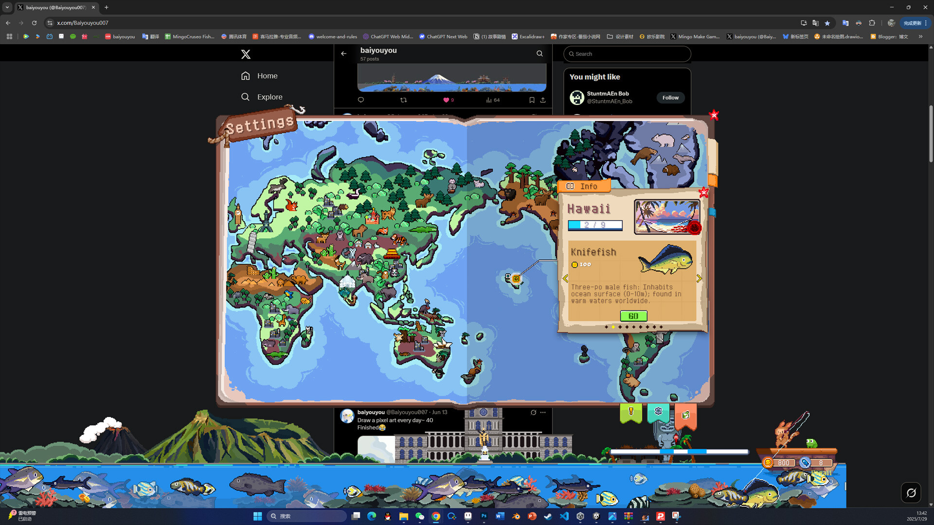 《Fishing Worldwide Desktop》 is a desktop game that accompanies you during work and study. You can fish in various locations around the world, collect different species, and learn about their appearances while enjoying some leisure time.