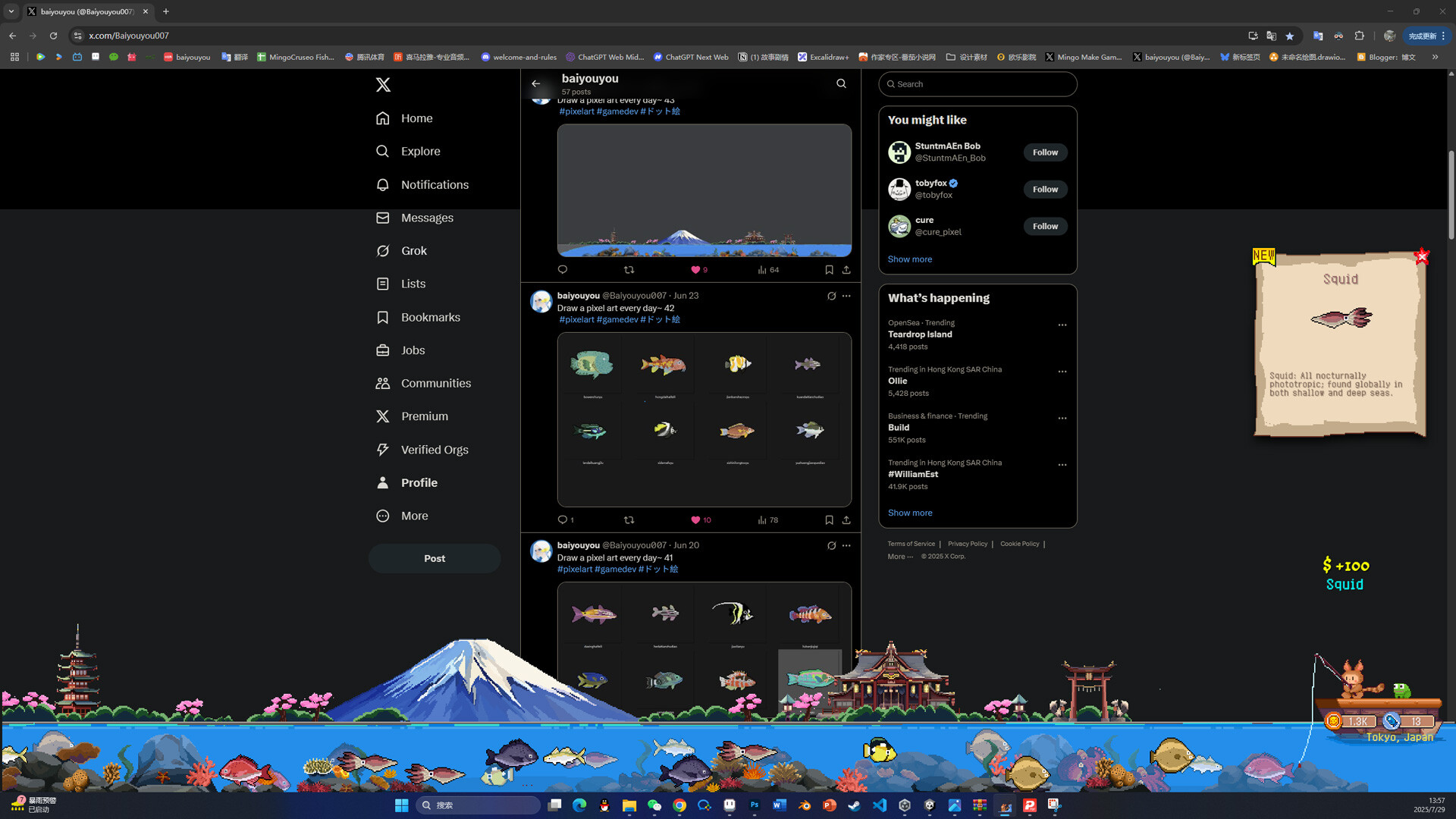 Hand-drawn pixel fish are waiting for you to collect, with different fish swimming at varying frequencies.