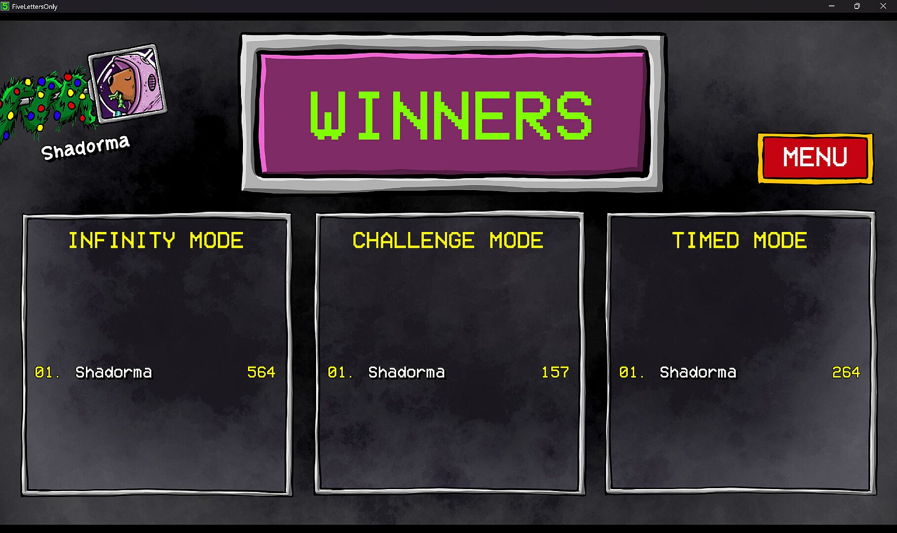 Challenge: You have 5 chances to submit words. Valid or not, it uses a turn.