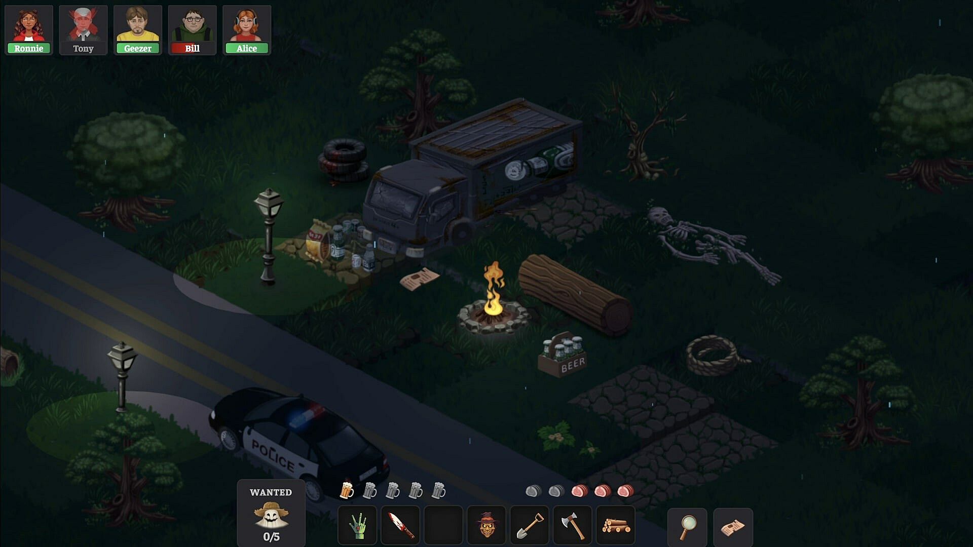 Welcome to the simulator of a serial killer! Like in a classic horror movie, a group of teenagers travels to the rural wilderness — and you are the maniac waiting for them. Take on the role of a living dead monster, set wicked traps, unleash explosions, spread poison, and hunt the teens down one by one.