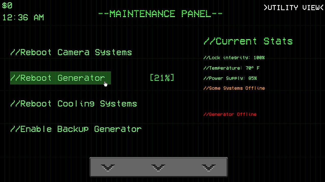 In this absolutely RIVETING sequel to Five Nights at Roner's, you are tasked once again with ensuring the safety of the haunted house you are assigned to. Manage your power, ensure safe function of components, upgrade your systems, and make it out alive. Repeat 5 times, and the paycheck is yours.