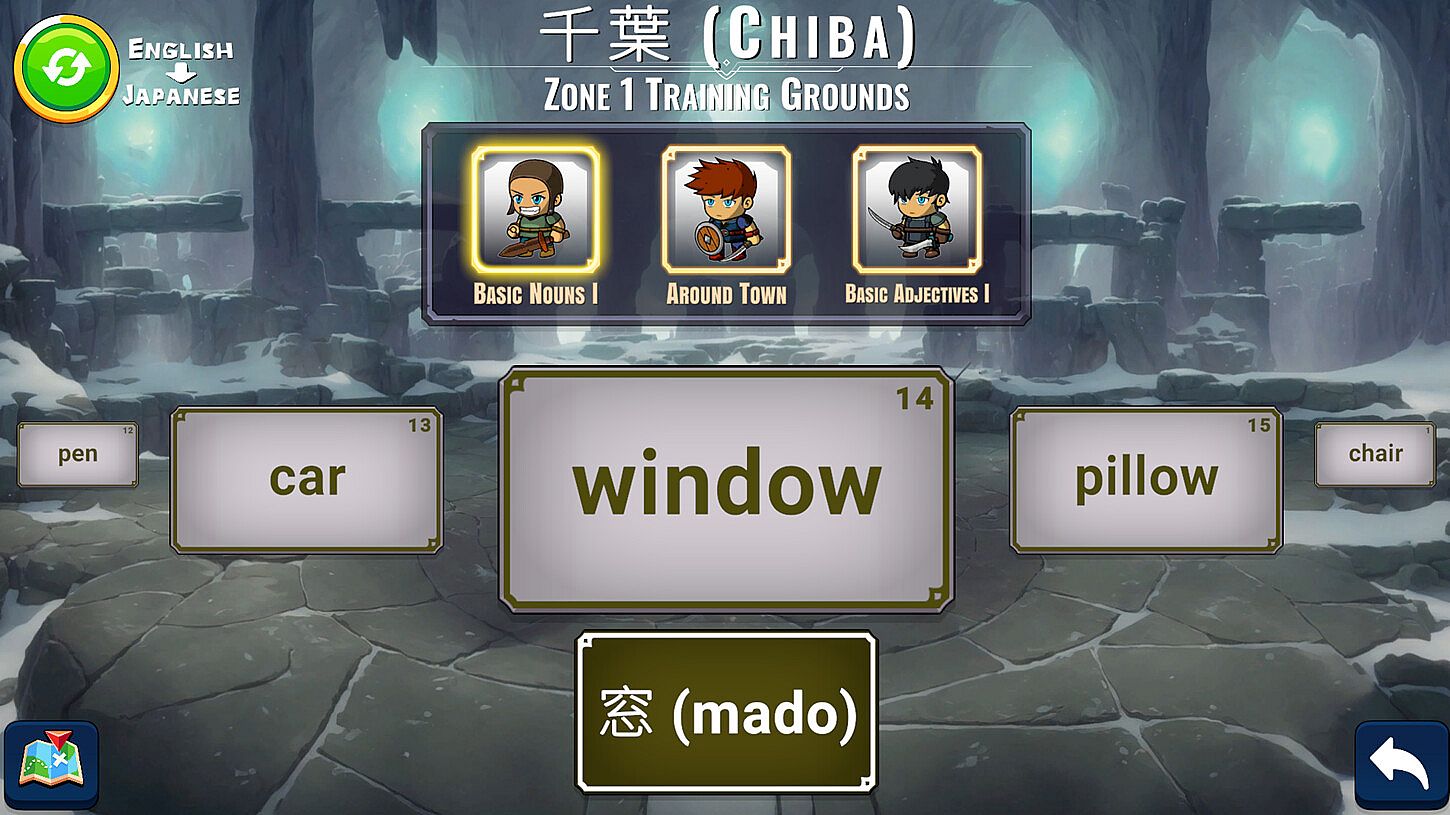 Need to brush up first with a more traditional flashcard experience? Review vocabulary in a self-paced non-combat environment before taking on your flashcard enemies. Too easy? Try Hardcore Mode for extra intensity (and extra experience!).