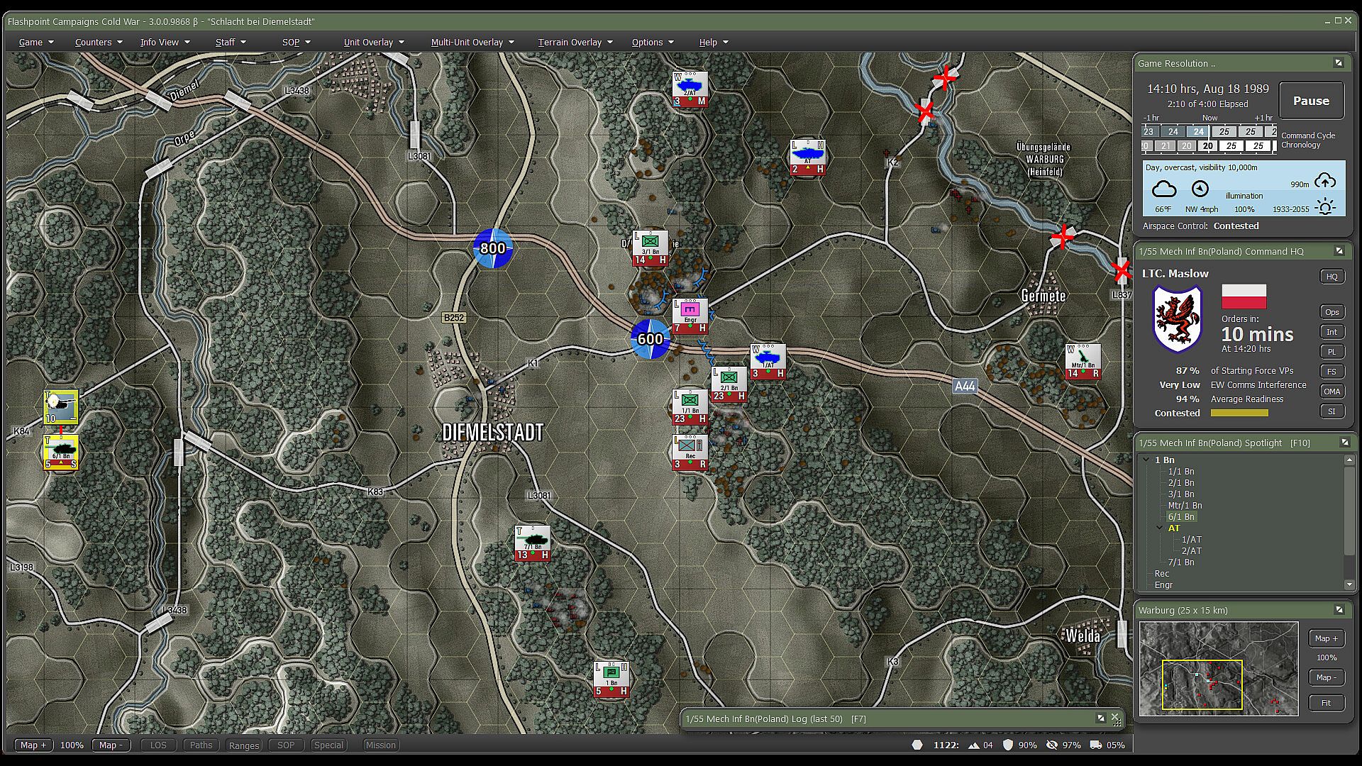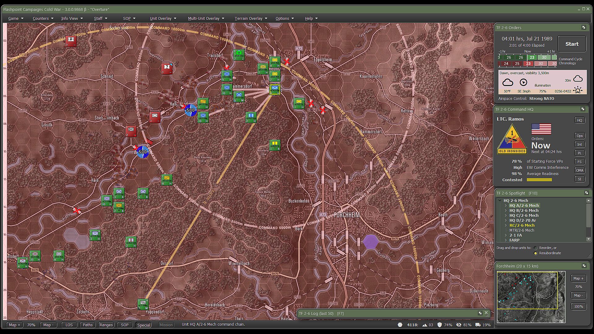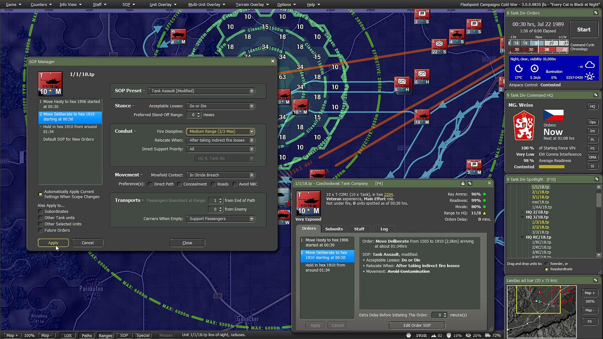 Flashpoint Campaigns: Cold War is a grand tactical combat simulation on the Cold War battlefield. As the force Commander, you will plan and then issue orders and Standard Operating Procedures to your battalion, brigade, or regimental forces, shaping the fight by maneuver and your intent. Your forces will engage the enemy in rendered real-world map locations. Each hex is 500m of militarily significant terrain on maps covering 20km x 15km or greater locations across the German area of battle. Each battle can last 4 to 24 hours of in-game time. Your troops will meet their foes at any time of day and in any realistic weather conditions.