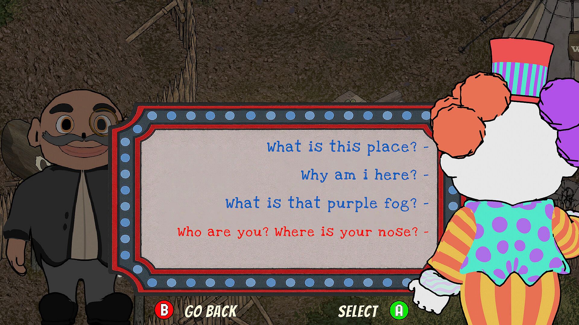 Your Karma defines your reputation across the Circus. Positive or negative Karma influences how others treat you and determines the special rewards you can unlock from the Karma Tester Machine.
