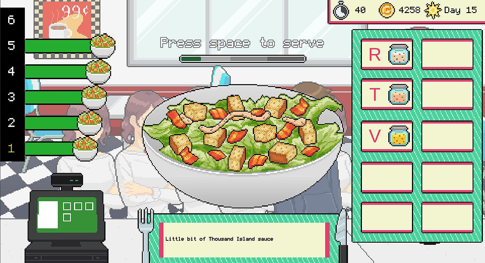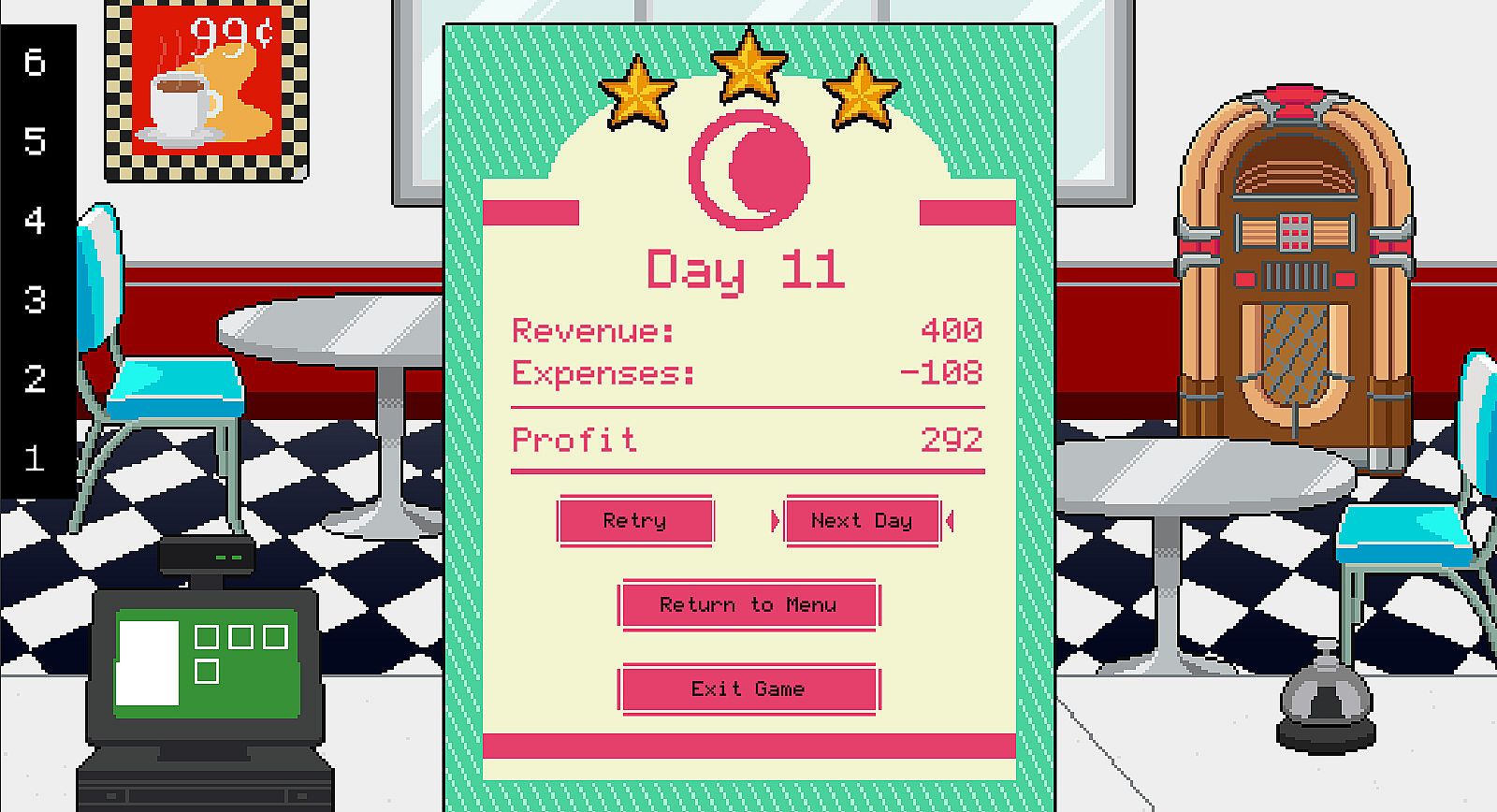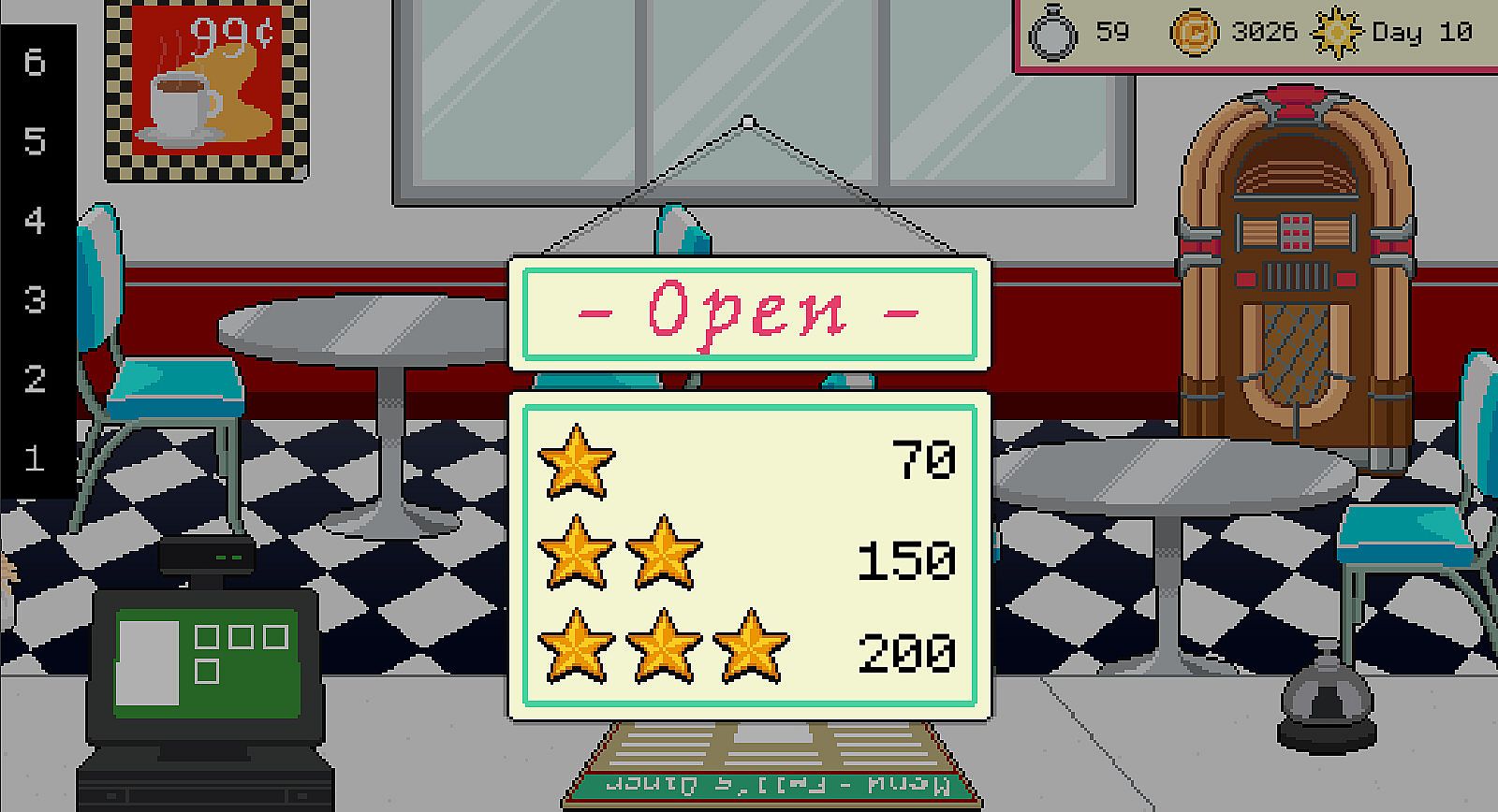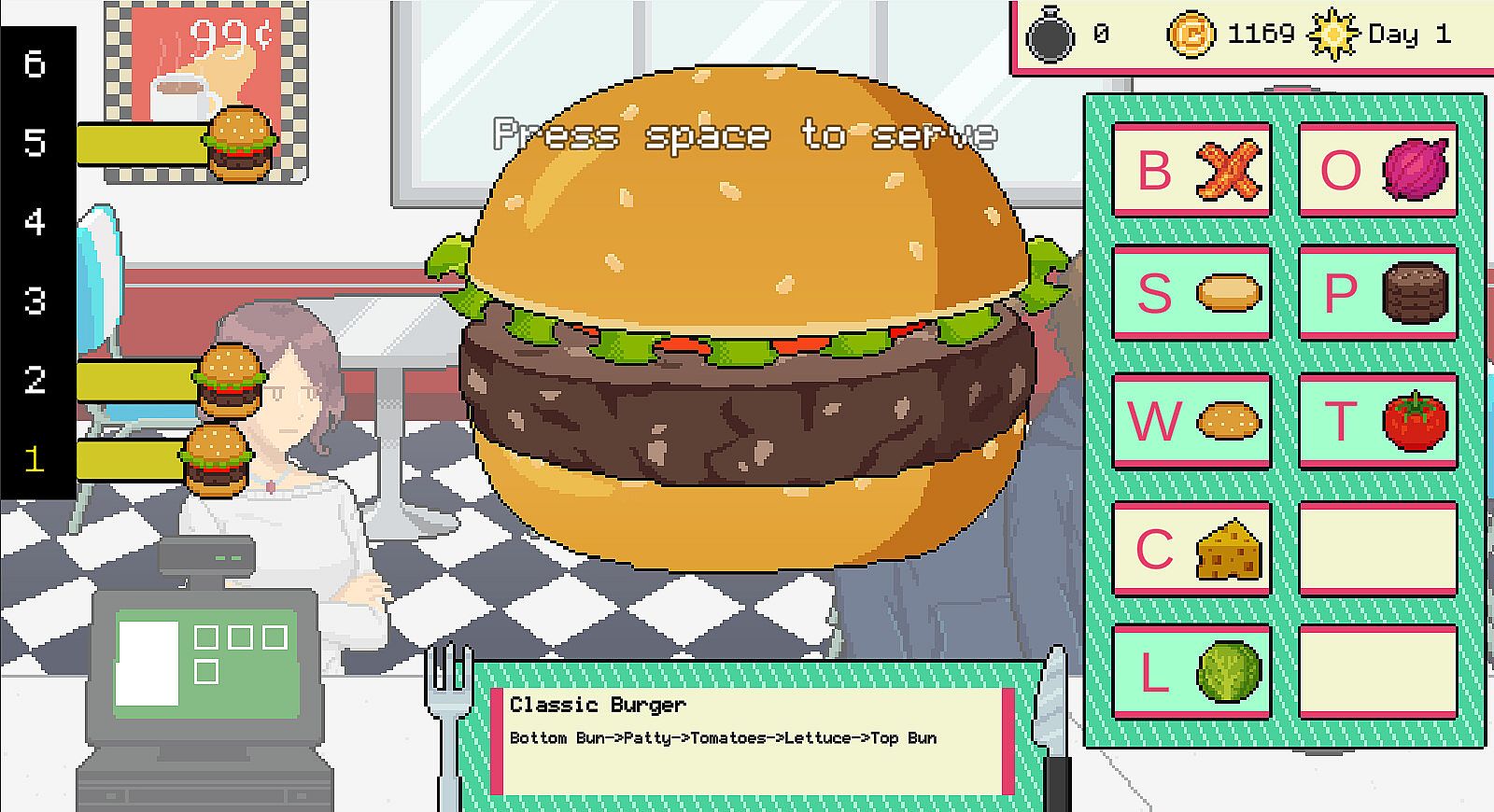Cook up diner classics in this casual pixel art arcade game centered on time management and cooking. Select ingredients with speed and precision for burgers, pizzas, salads, and more across 13 recipes, while monitoring ovens and grills. Handle a rush of orders to satisfy customers before the daily timer expires, or risk starting over from ingredient mix-ups or poor timing. Hand-drawn retro pixel art captures the bright vibe of an 80s diner, paired with fast-paced action and a cozy story as grad student Everett steps into Mr. Fell's restaurant shoes. Pick novice or experienced chef difficulty to match your skill. Casual players who enjoy quick arcade challenges and lighthearted progression will find a perfect fit.