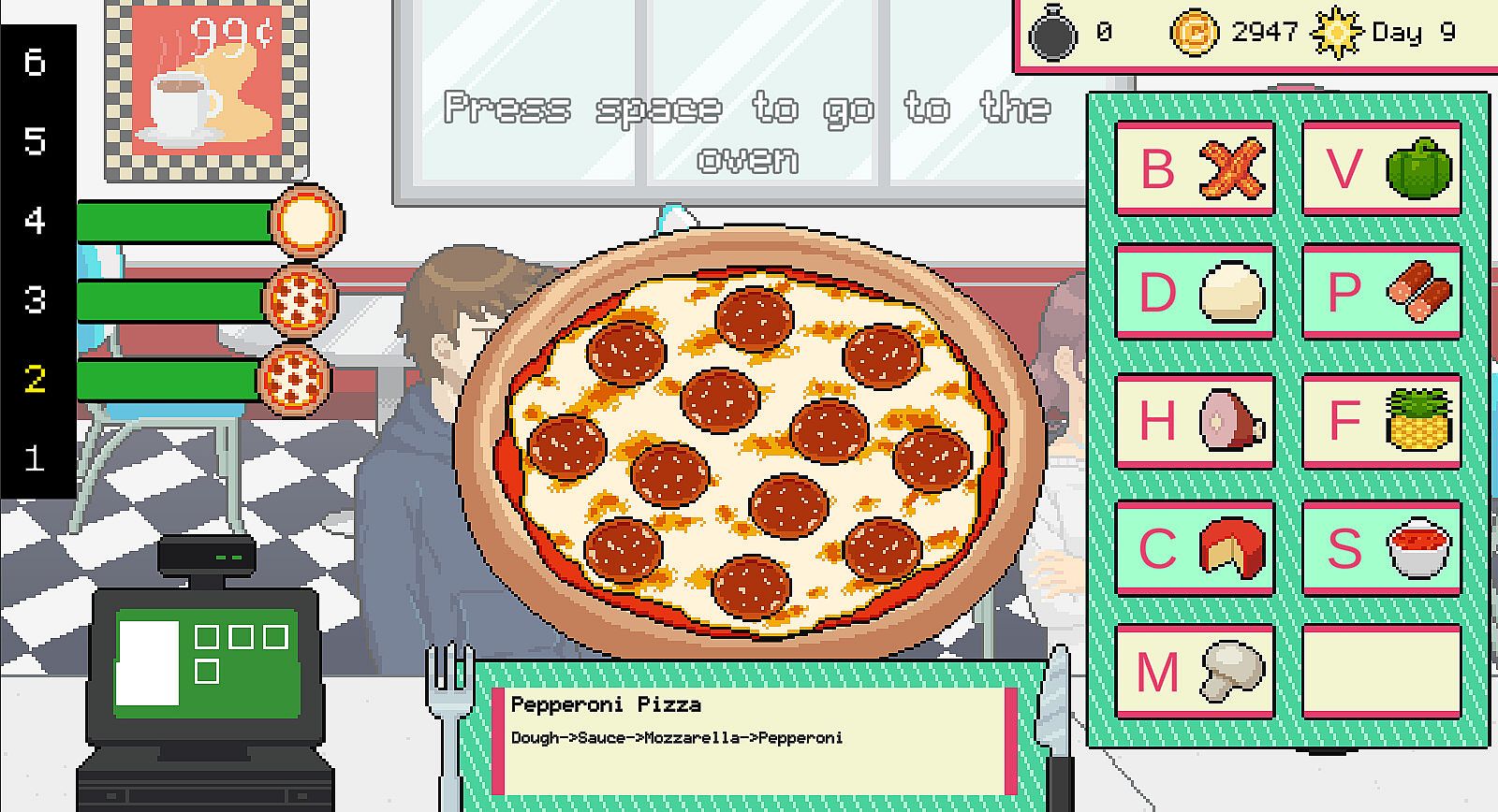 Flavors of Fortune is a casual pixel art arcade game about cooking and time management. Quickly but carefully select the right ingredients for your dishes while keeping track of pizzas in the oven and patties on the grill. Juggle multiple orders while serving as many customers as you can before the daily timer runs out.