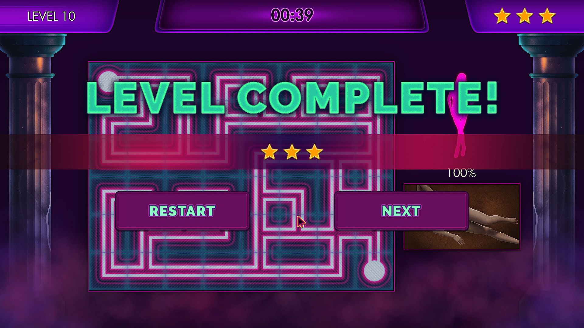 It's puzzle time! Connect all the neon pipes together to solve the puzzle and reveal high quality, realistic, naughty & sexy girls! Earn all the stars to beat record scores and unlock achievements.