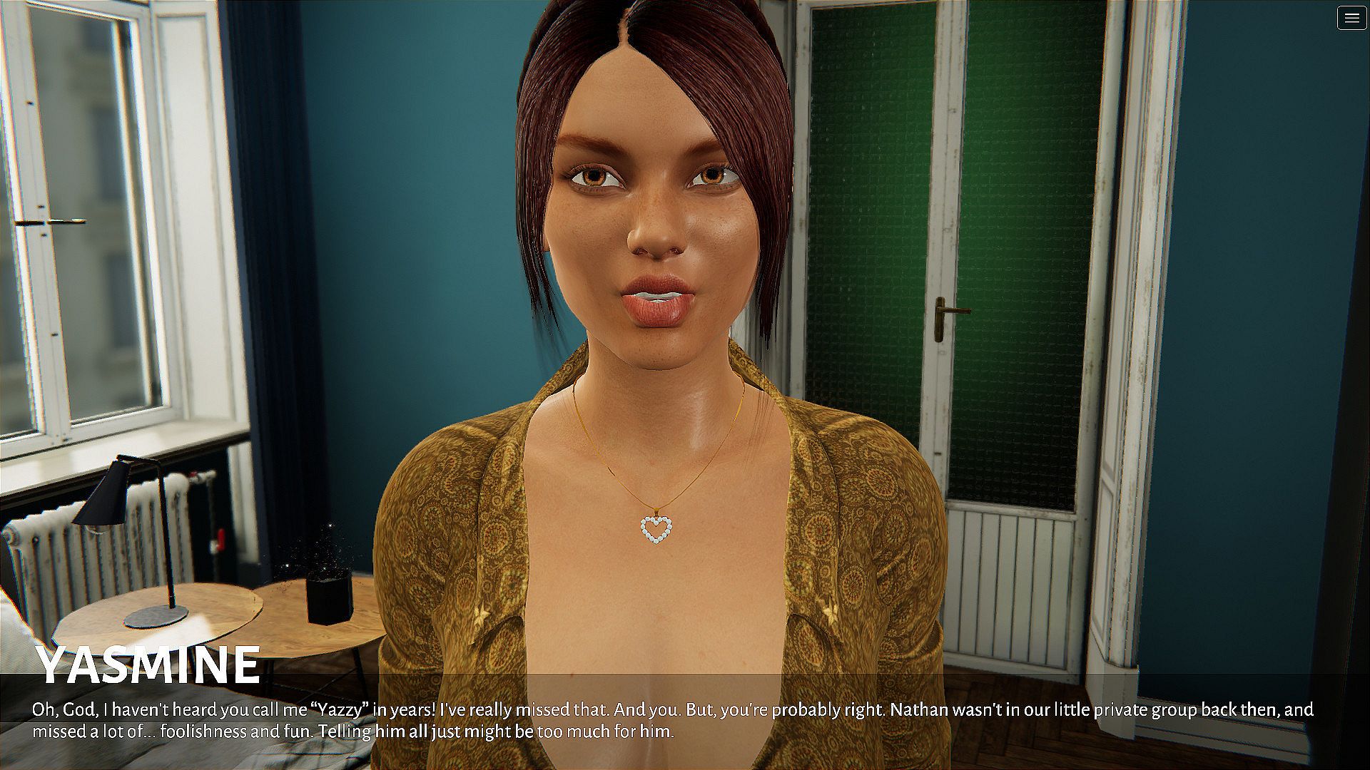 The core of the game will revolve around your high school crush and the gameās eponymous heroine. Yasmine always was the highlight of your day - the best friend who could lift your mood with the mischievous lilt of her lips, the partner-in-crime who would laugh the hardest whenever you got away with something and would trade all of your stupid jokes with even sillier ones of her own. The confidant who lent an attentive ear to any and all of your secrets⦠except one. That you had fallen for her. Hard. That whenever she spoke of her latest crush you would smile a brittle smile as you felt your insides crumble. That you knew your fat self would never number among those crushes, that she would never see you as more than a friend⦠that was Yasmine for you: Heaven and Hell in one gorgeous package. Honestly, parting ways with her after graduation was the most bittersweet experience of your young life. As for meeting her again⦠you are not quite sure what that will be like.