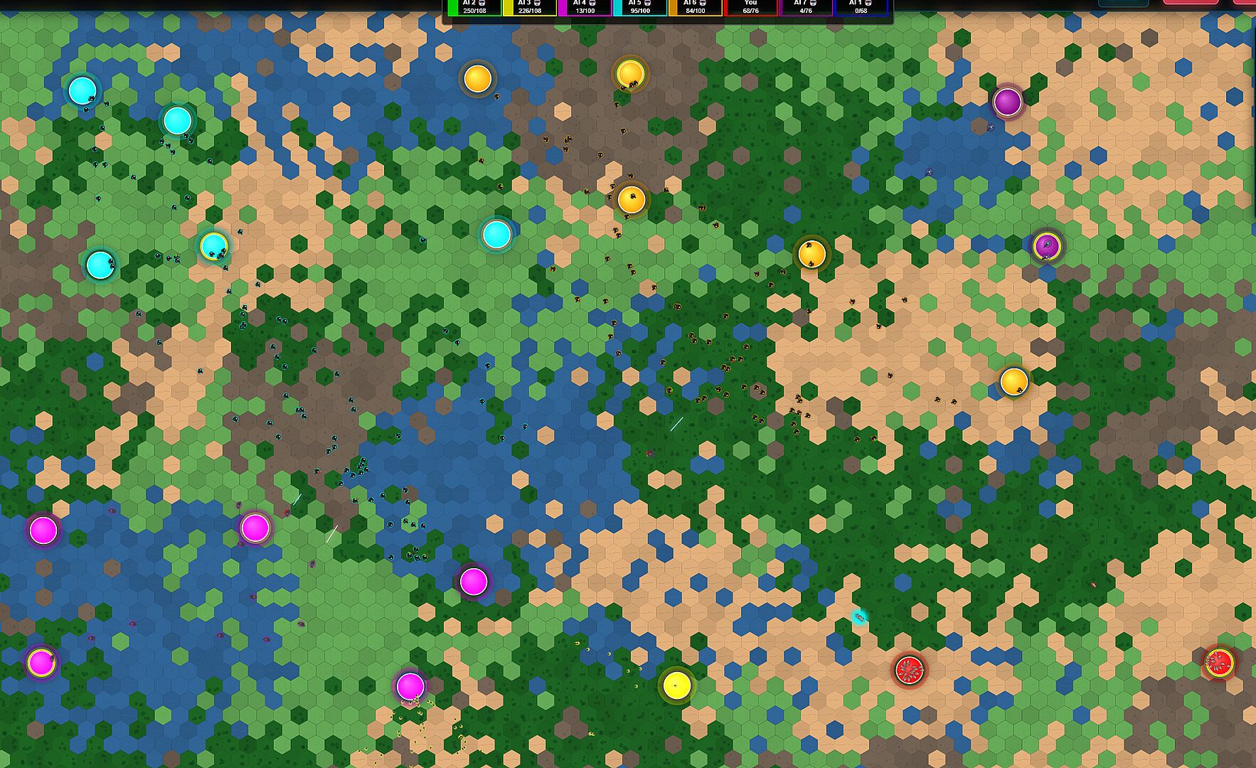 FlockingWars is a fast-paced real-time strategy game where you command armies of flocking creatures. Take control of birds, fish, mammals, and insects in short, intense battles for control of the map.