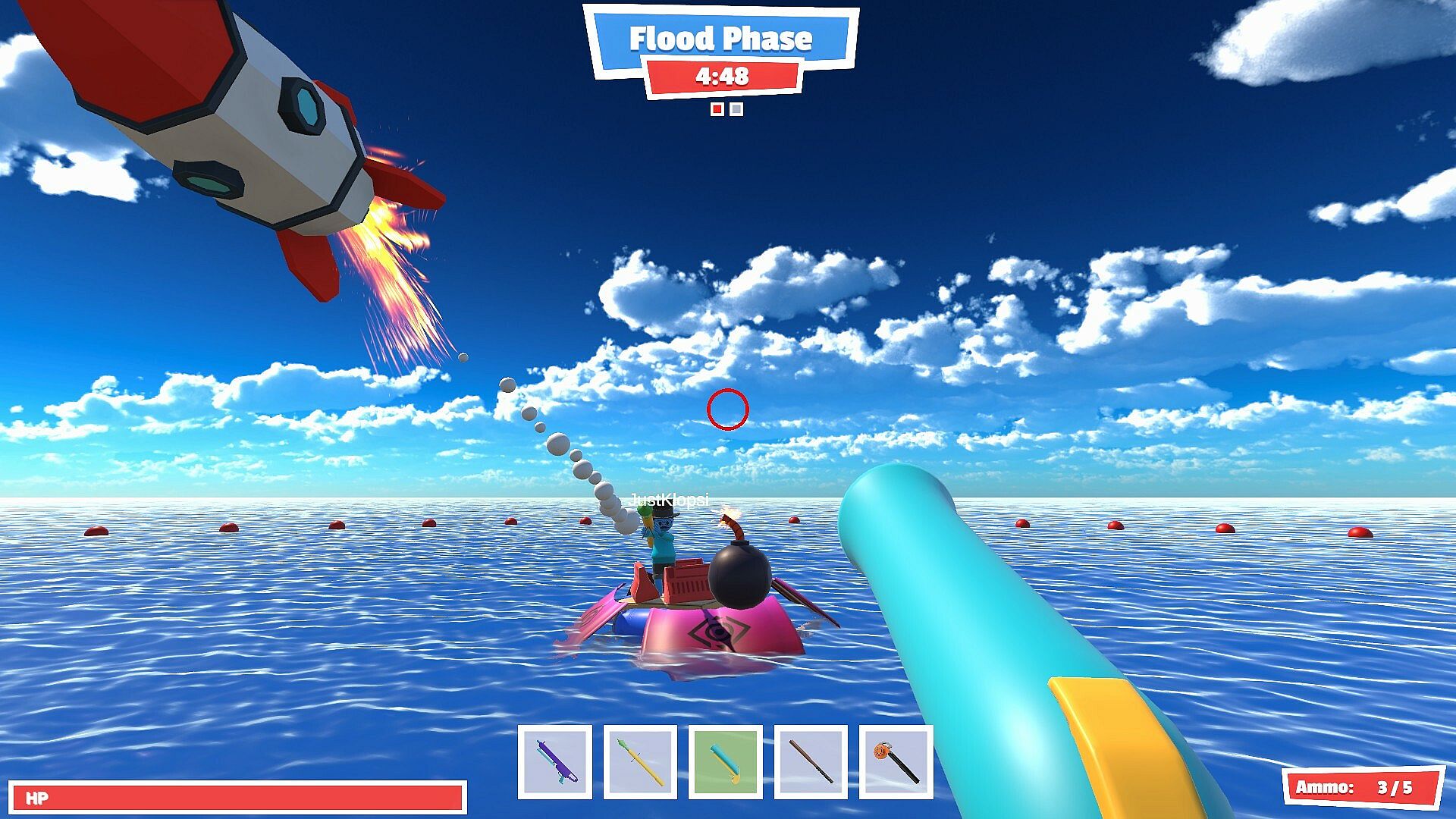 Embark on a hilarious and chaotic adventure in Flood, the ultimate battle royale experience in unpredictable waters! Dive into a world where every sailor's dreamboat is a wonky, wobbly vessel crafted from scrap. Compete against friends and foes alike as you try to stay afloat and and engage in epic battles to be the last one standing!