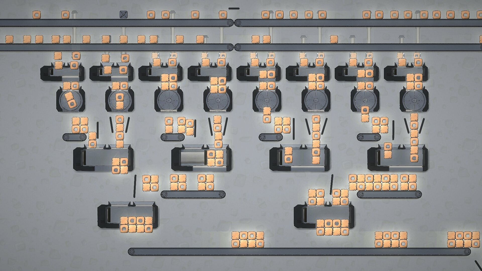 Think about the best way to combine different materials. You can merge your materials, grip, transport, rotate, duplicate, reshape, melt, blast, sort, distribute, accelerate them. Be creative, experiment and see what works.