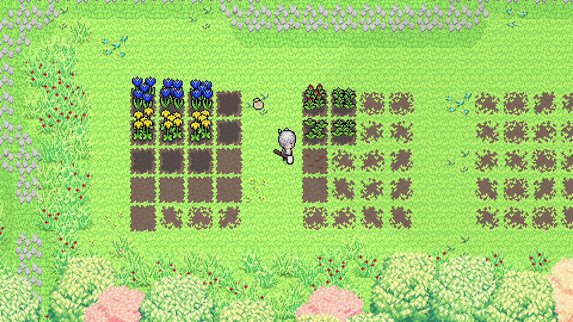 • Fast growth cycle. Once planted and watered, flowers grow rapidly, sprouting stems, leaves, and buds, visually progressing from seed to a fully blooming flower in about a minute. You can watch them grow, explore the garden, or simply spend some time chatting with the Witch.