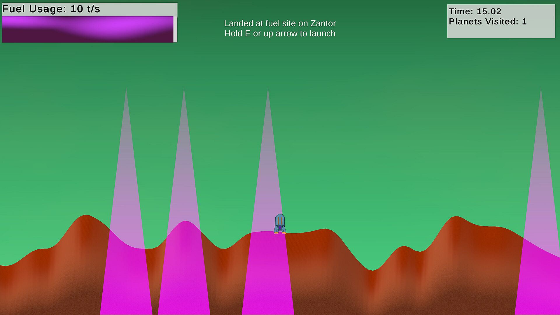In Flowrate, you're alone in a procedurally generated galaxy, drifting between planets and running low on fuel. Landing is risky. Launching is costly. Only a few worlds hold the upgrades or antimatter you need to survive.
