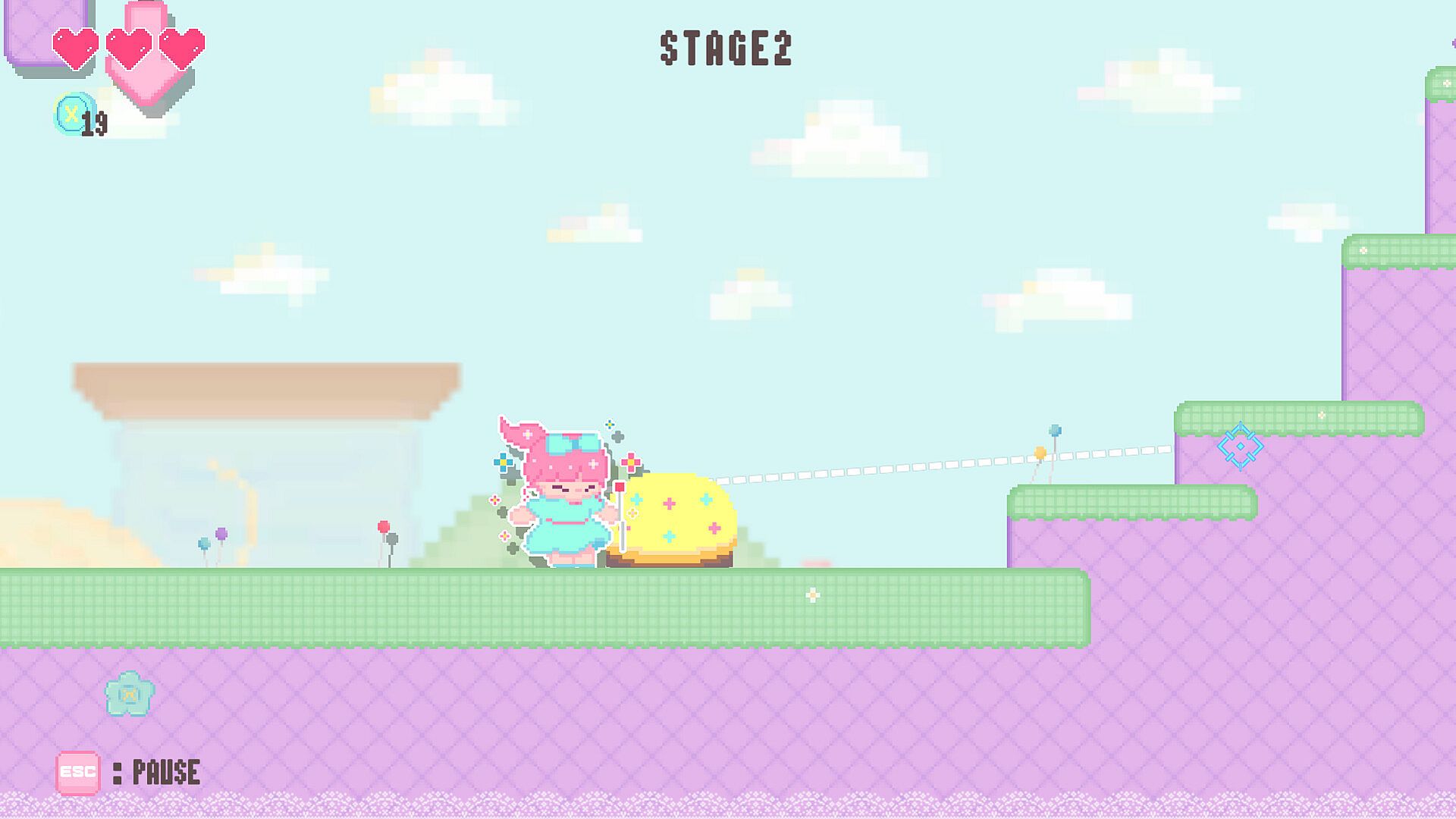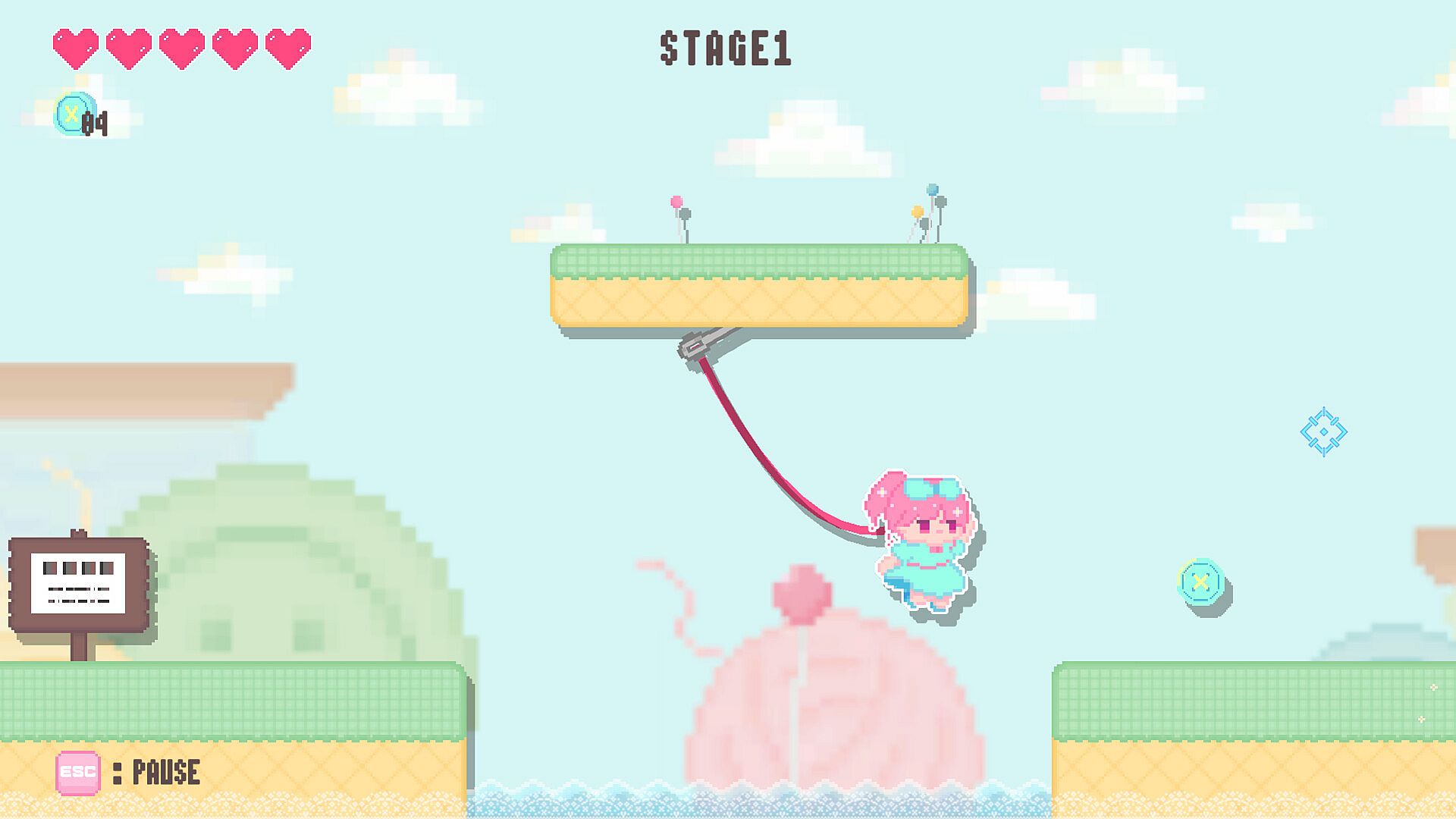 FLUFF SWING is a 2D action game where you advance using a wire (thread) inspired by sewing tools.