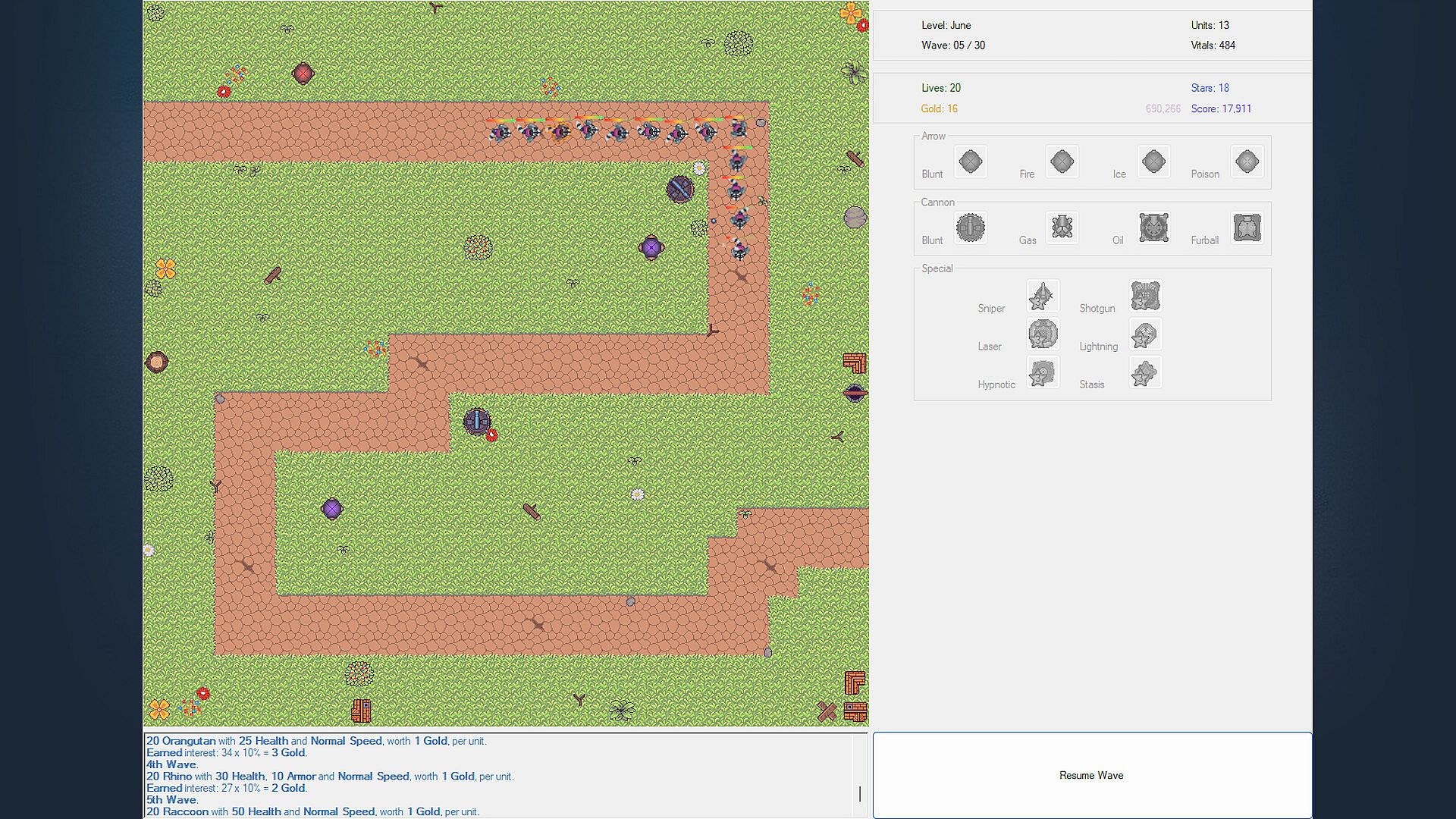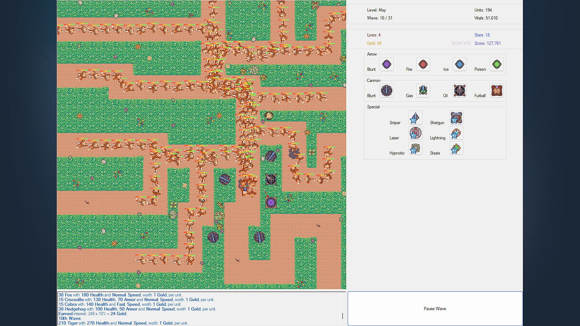 Place towers, combine their effects, watch as fire, ice, poison and lightning clash in chaotic ways. But be careful: fire and ice cancel each other out - and enemies don't just take it lying down. Some are fast, some armored, some heal themselves - and all of them want through.