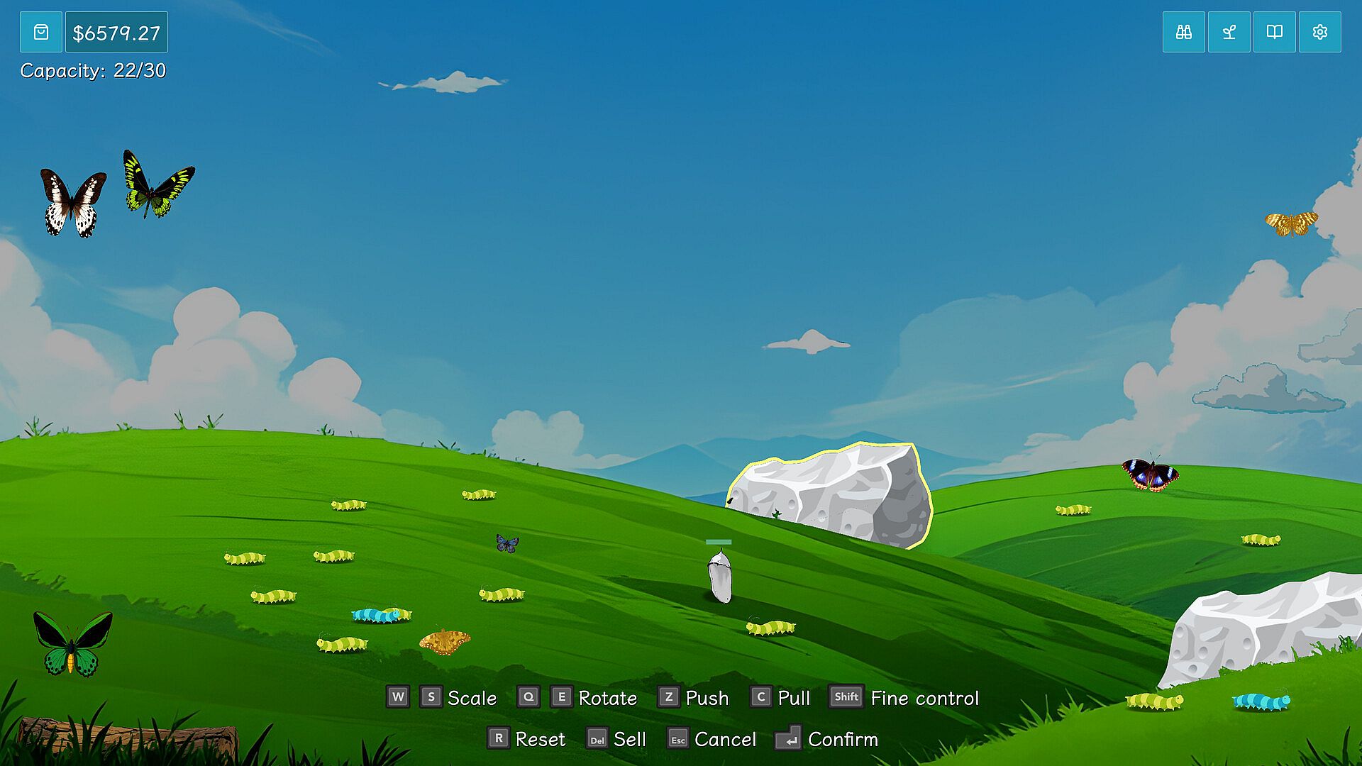 Feed your caterpillars to make them grow faster, or feed your butterflies to boost their income!