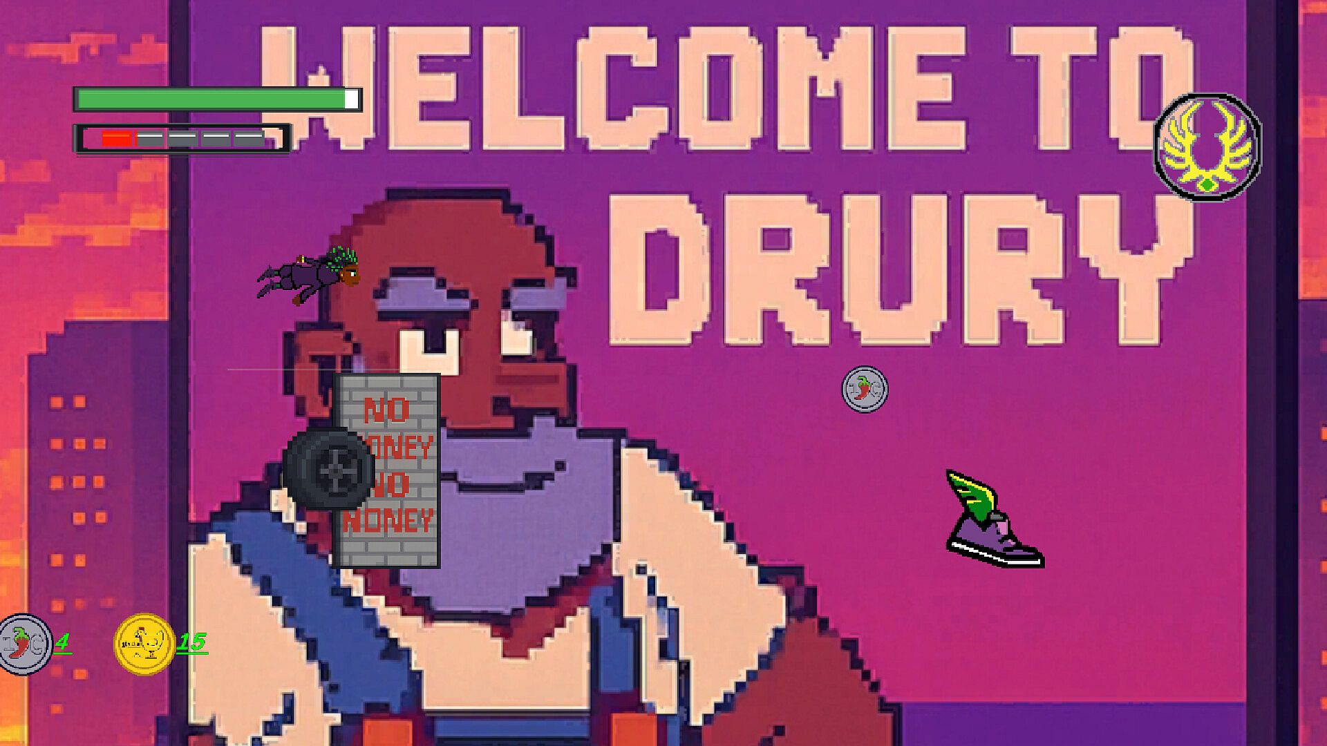 • Atmospheric Pixel Art: A vibrant, hand-crafted visual style that captures the rhythm and mystery of Drury.