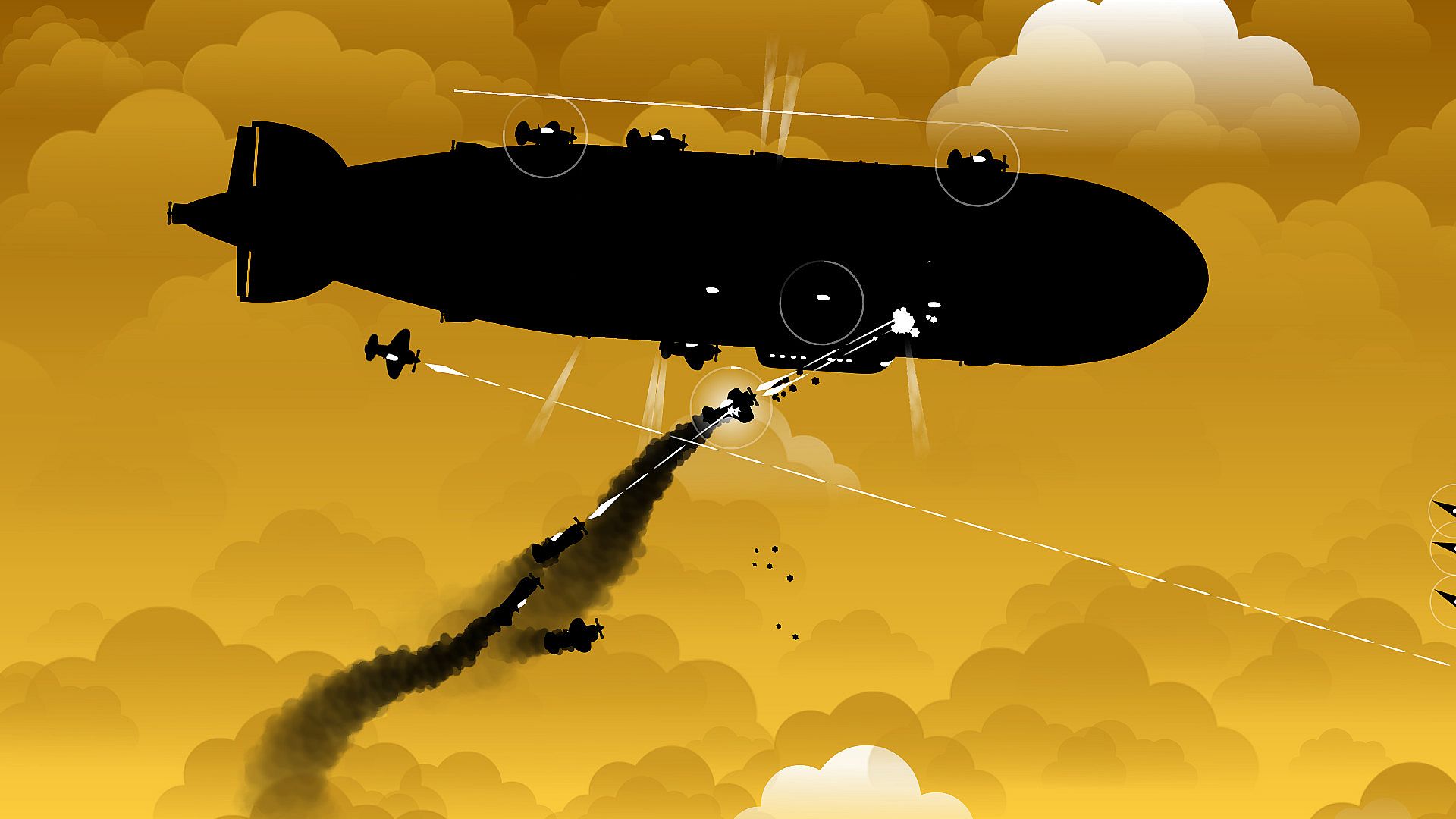 Each aircraft is inspired by a real machine. Fight against "Zero", "Superfortress", "Peshka", "Spitfire", and even V-2 rocket. Intelligent enemy AI can perform advanced defend and attack maneuvers.