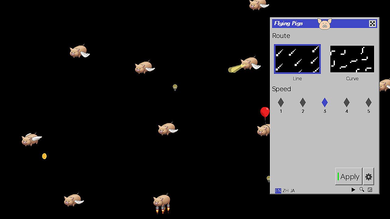 When you activate this program, it will display a screensaver animation while your screen is idle, making your computer look more interesting. A group of little pigs will fly across your screen, and some items with wonderful effects will also appear.