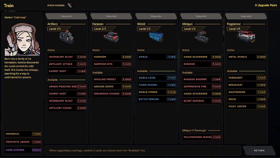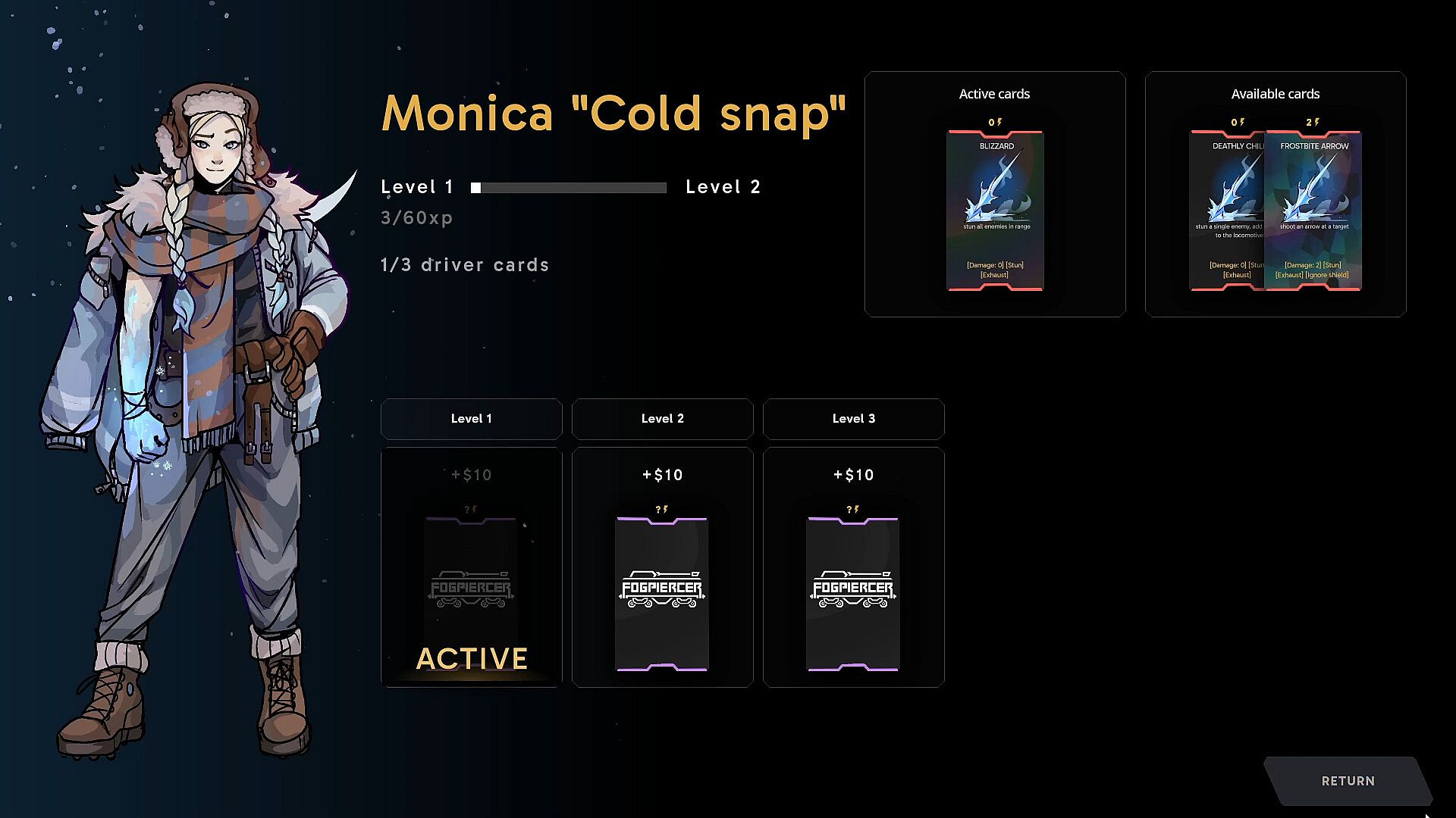 Metaprogression allows you to unlock additional carriages, drivers, and locomotives to seek out new combinations and opportunities for future runs, or focus on upgrading your favorites to unlock even more cards to use in combat – the bandits are relentless and unforgiving, and while your choices during a run will have a significant impact, your choices between runs can unlock entirely new options to explore.