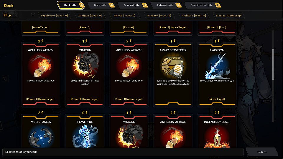 With over 170 cards featuring various status effects, support capabilities, damage outputs, and more, you’ll want to build a train that matches your preferred playstyle and unlocks powerful opportunities. Collateral damage, chain reactions, and manipulating the battlefield are all critical elements en route to victory.