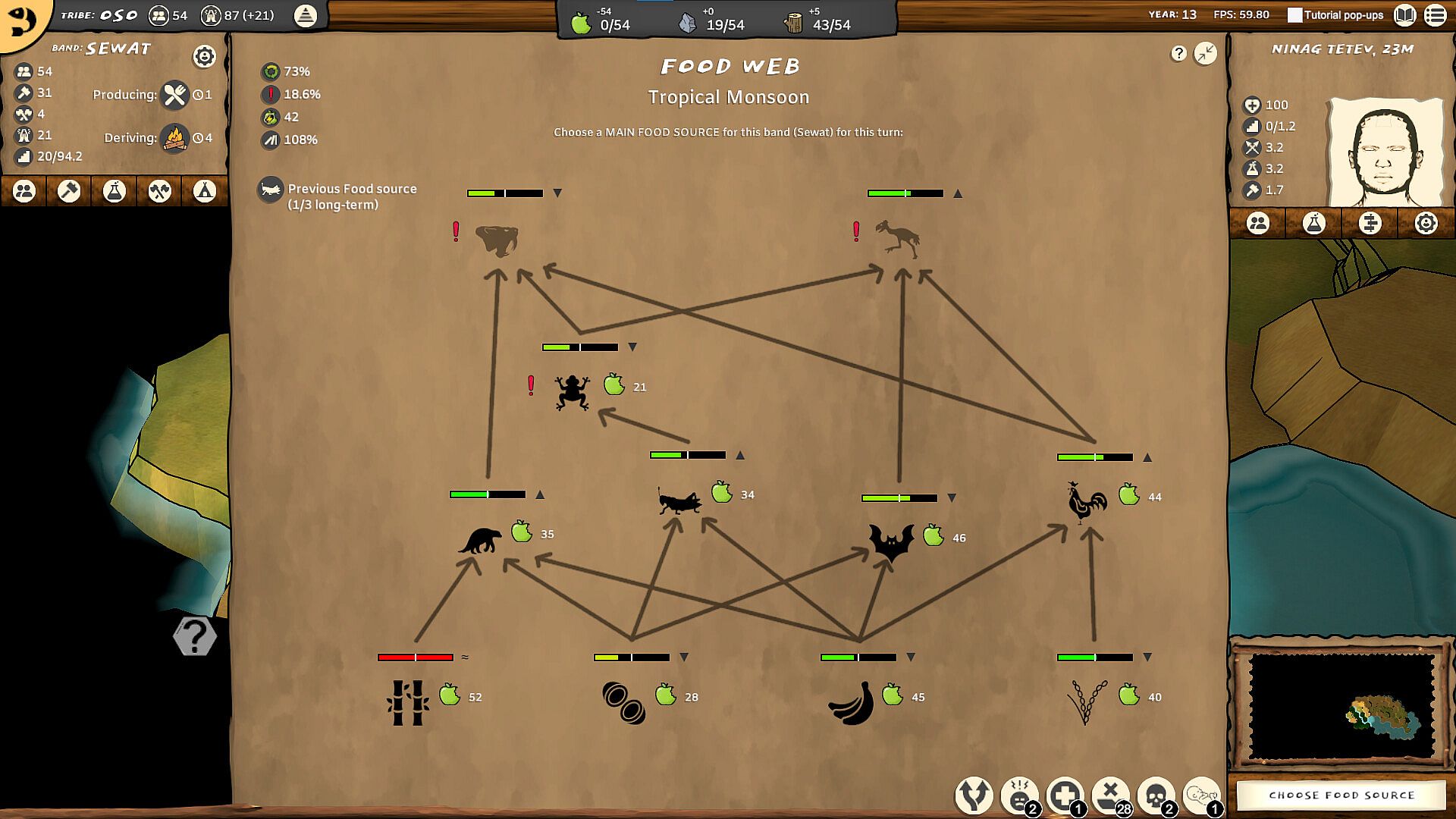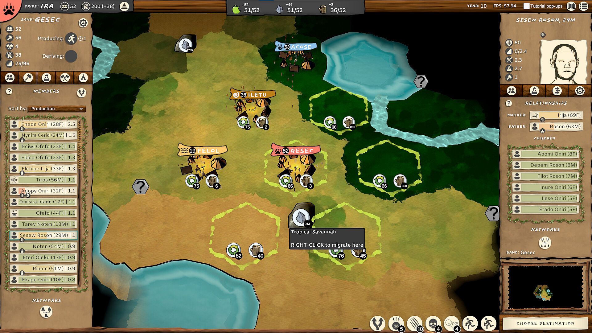 Before agriculture and settlements, we spent hundreds of thousands of years as nomadic hunter-gatherers. Guide your people as you migrate through harsh climates, each posing unique challenges.