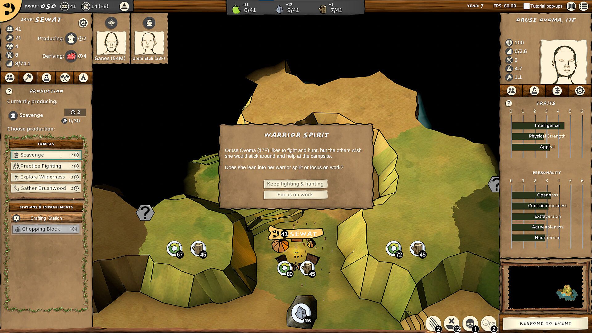 • Diplomacy: trade, fight, or collaborate with other tribes.