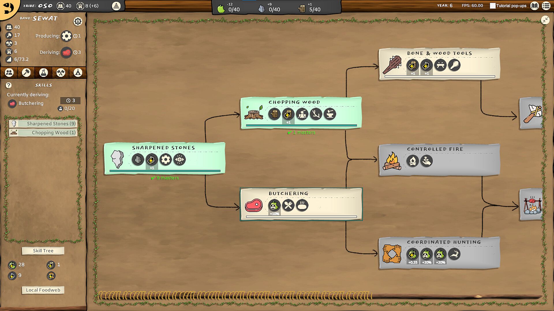• Technology: a tech tree spanning the Pleistocene up to the start of the Bronze Age, covering skills from controlled fire and cooking, through domestication and agriculture, all the way to megalithic construction and the first cities.