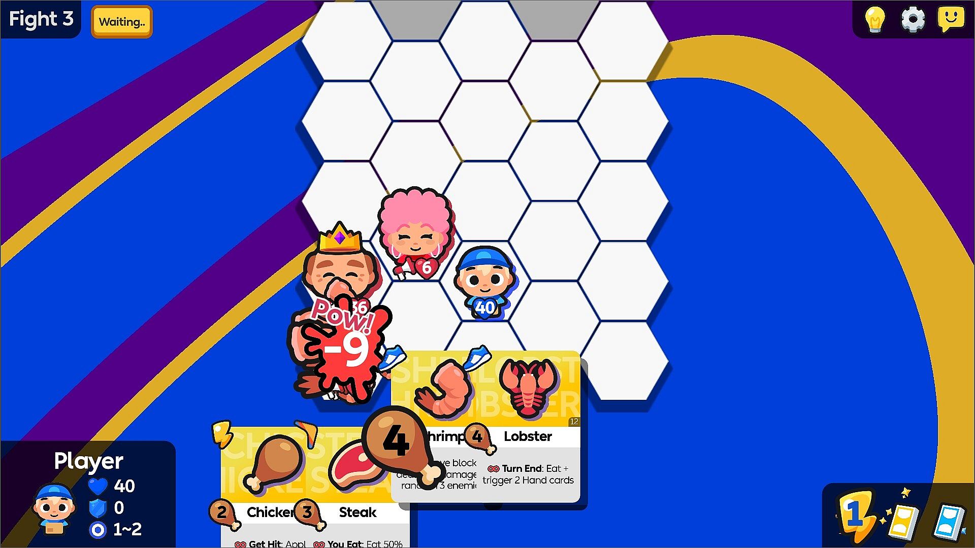 • Drag a food card on an enemy to attack.