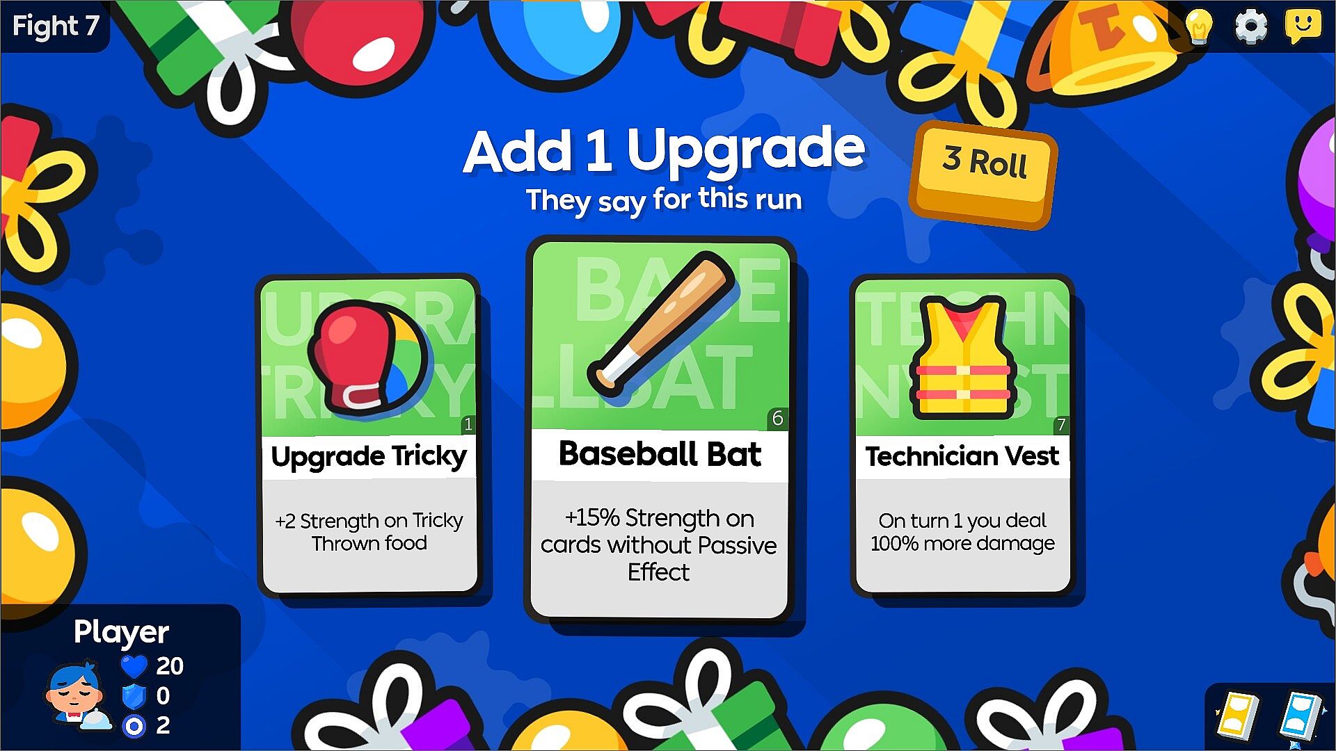 • Drag on yourself to eat and gain Block.