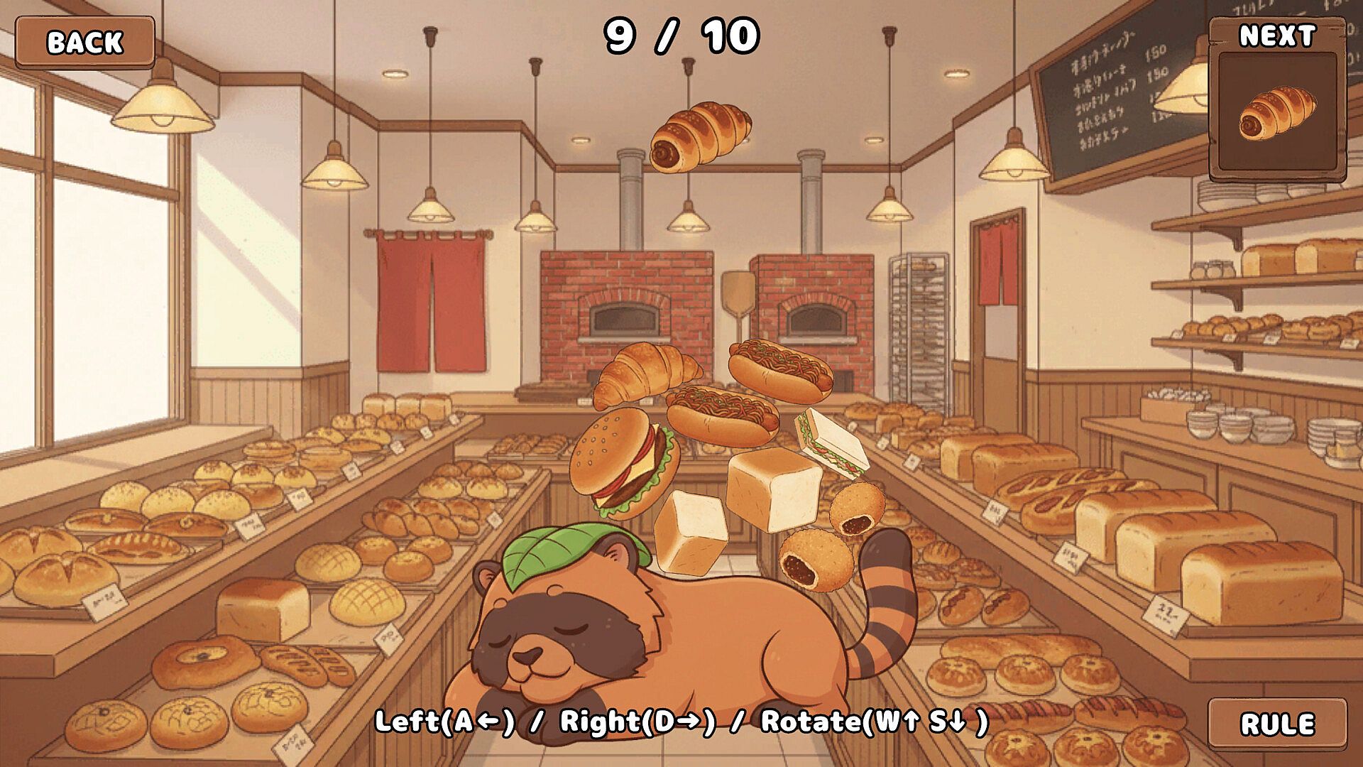 Drop sushi, ramen, and other Japanese dishes onto a sleeping character and try to stack them without collapsing.