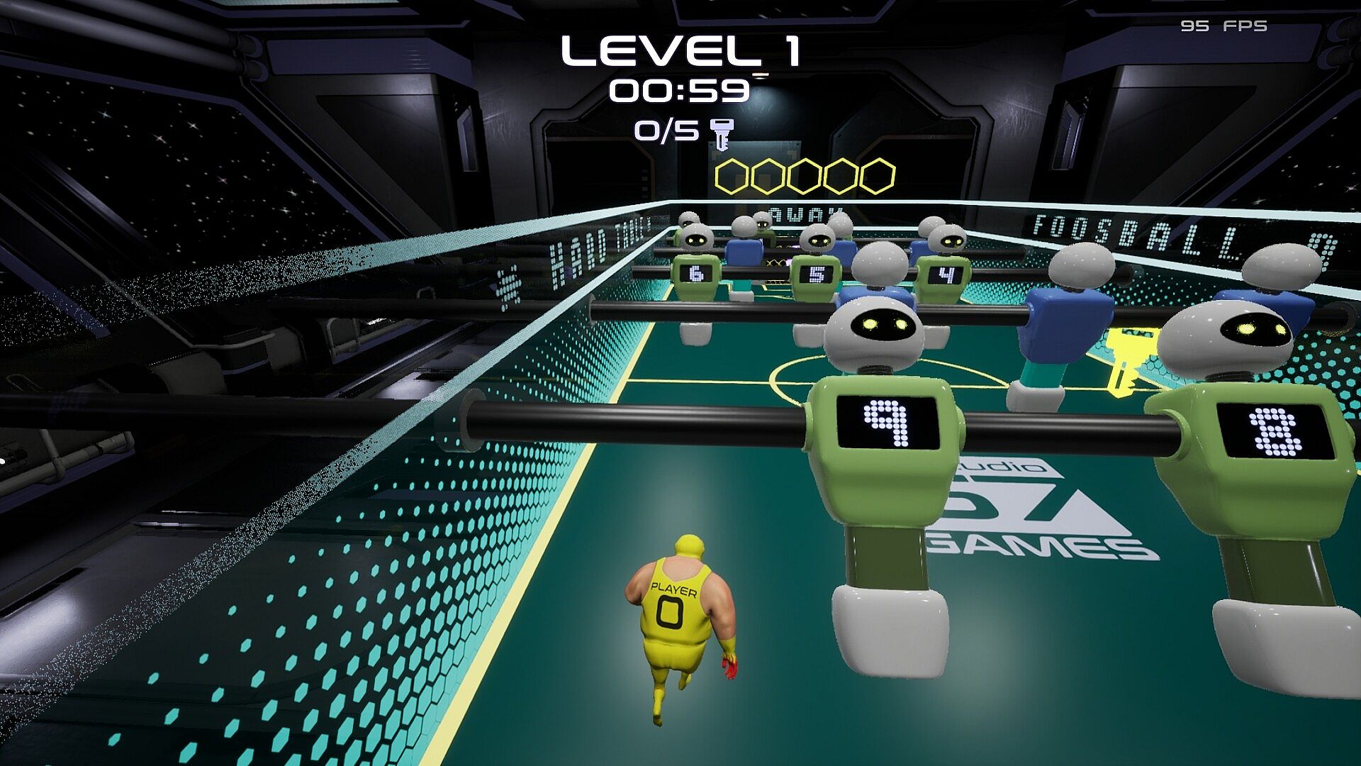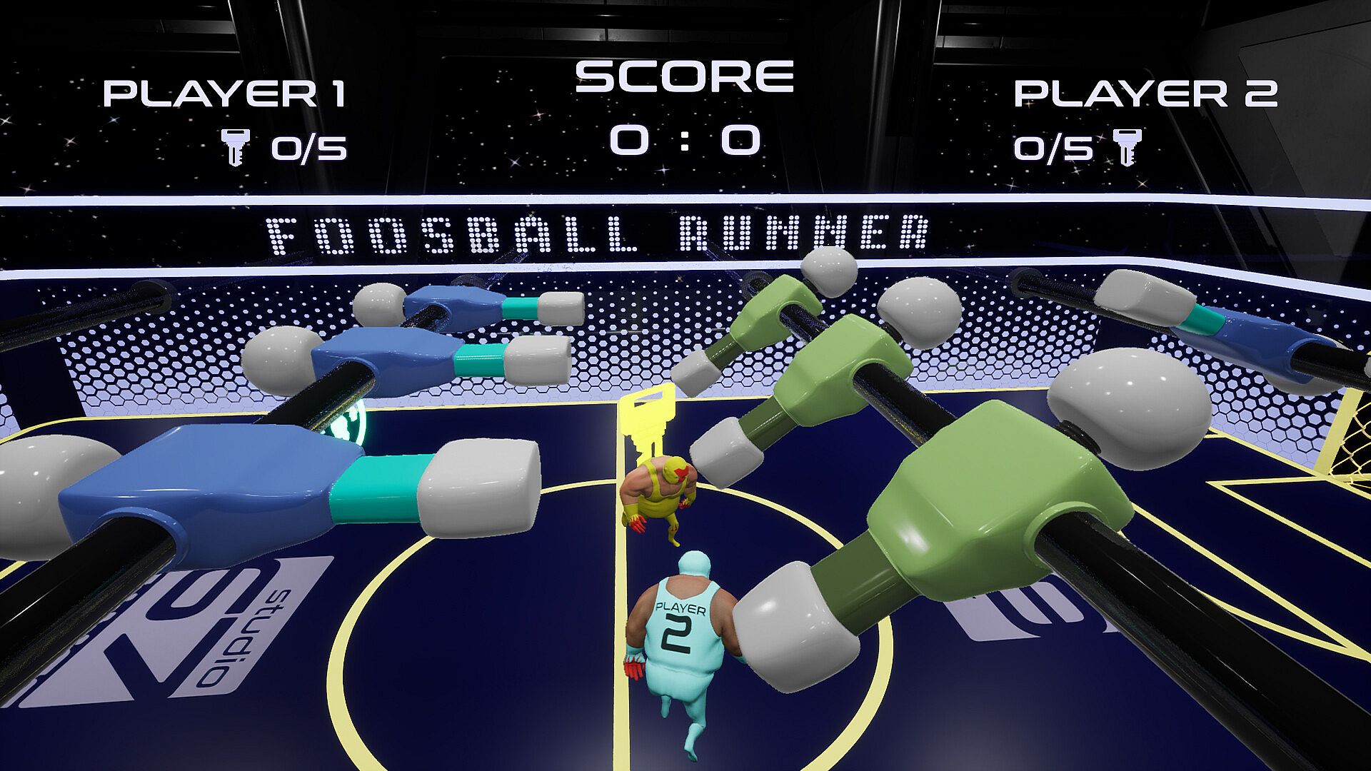 In Foosball Runner, you are not just playing the game; you are the game! Set in the sleek halls of a spaceship, this unique twist on table football puts you in the role of a plump footballer navigating dynamic tables. Dodge spinning figures, collect keys, and race against time to unlock gates and score big. Plus, compete with friends and players worldwide in exciting multiplayer matches where the first to score 5 goals wins!