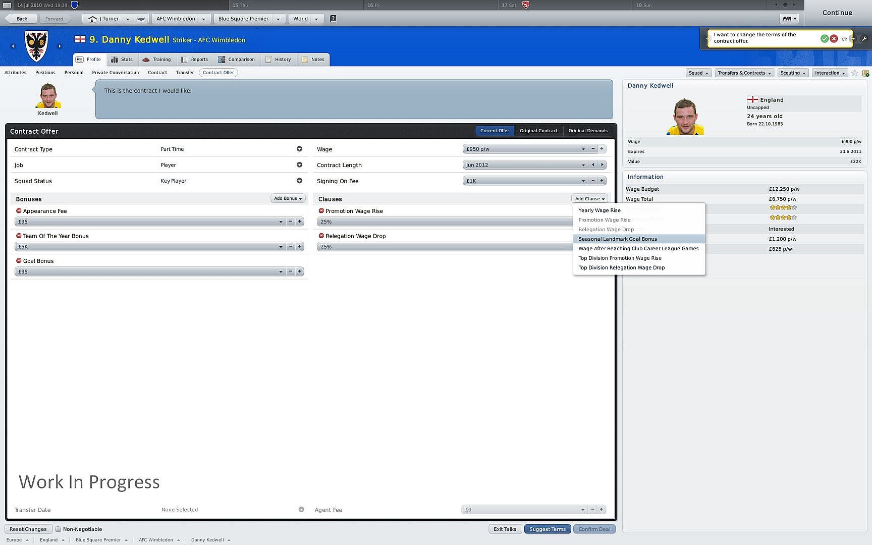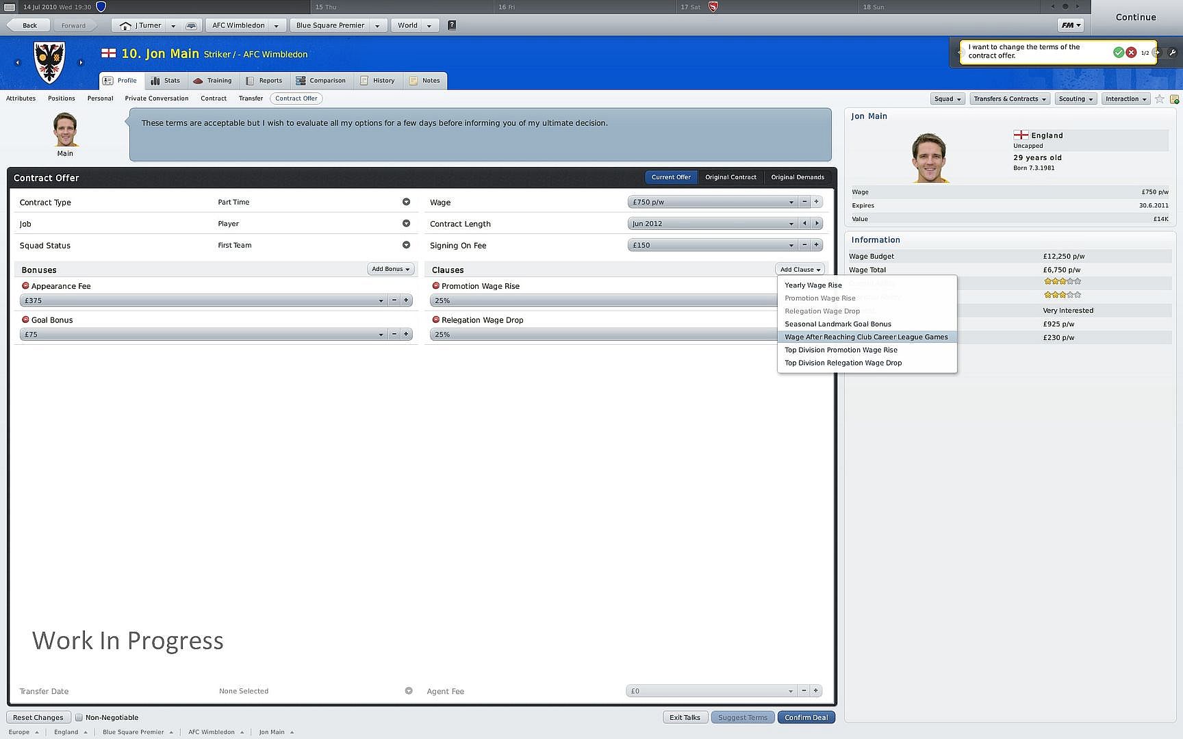- Contract Negotiations – making its debut in Football Manager 2011 is a new live contract negotiation system, with a host of new contract clauses. Learn to deal with different types of agents as you try to secure your next big signing.