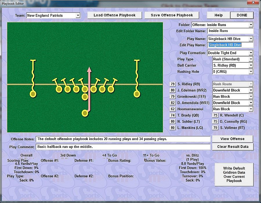 • Supports custom offensive and defensive playbooks for every single historical team