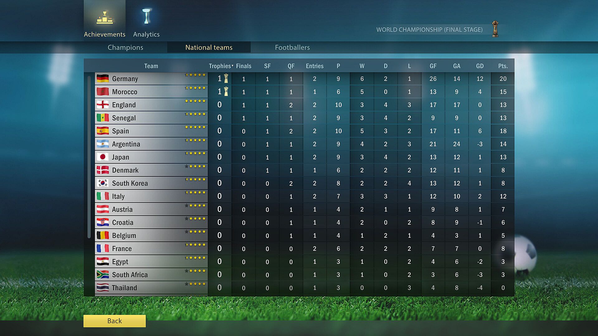 All of this takes place in a vast, living football world, where clubs compete in various tournaments with promotions and relegations, where football players have nationalities with their own unique characteristics, and national teams battle for victory in World Championship.