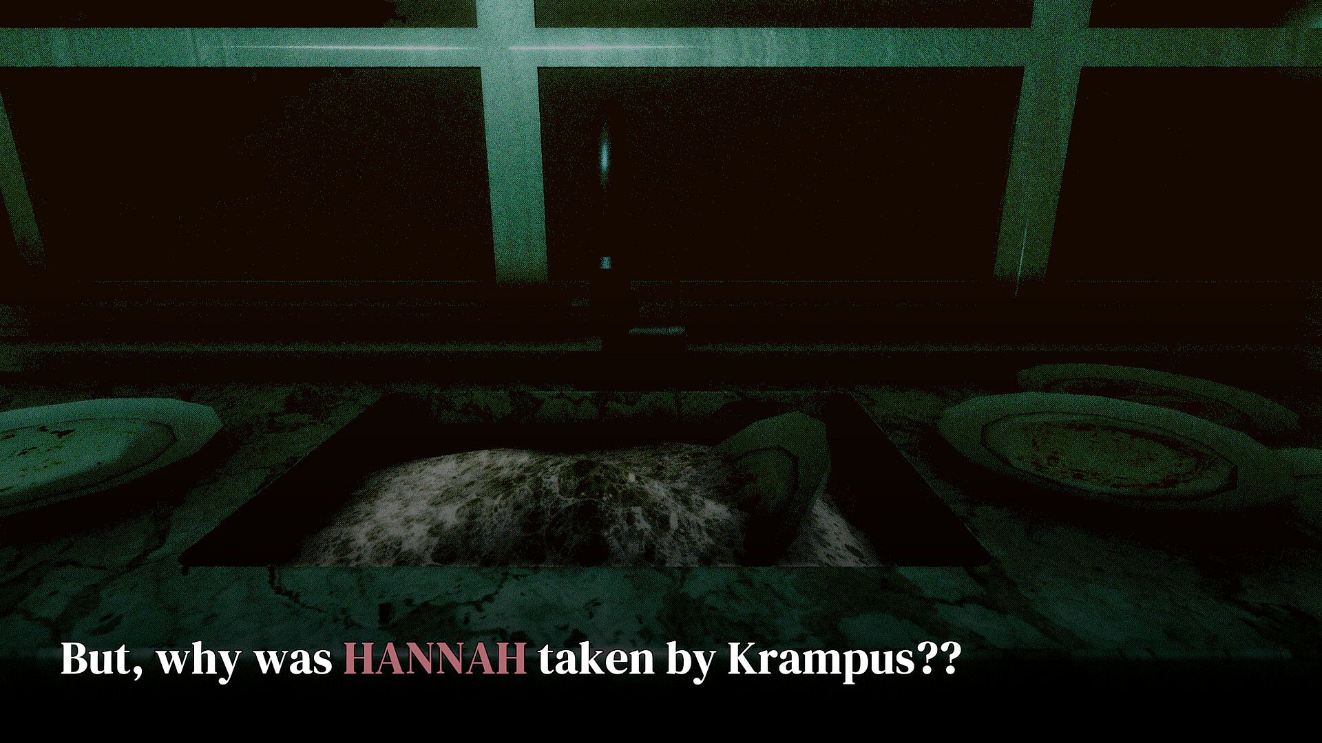 For Goodness Sake is a very short horror text heavy game, focusing on several trolley problem situations. While completing the chores around the house, you find yourself reflecting on situations involving the neighborhood kids that have gone missing & ultimately deciding what you think might have been the right thing to do. Will you be taken by Krampus at the end of the night like the others, or will you be spared?